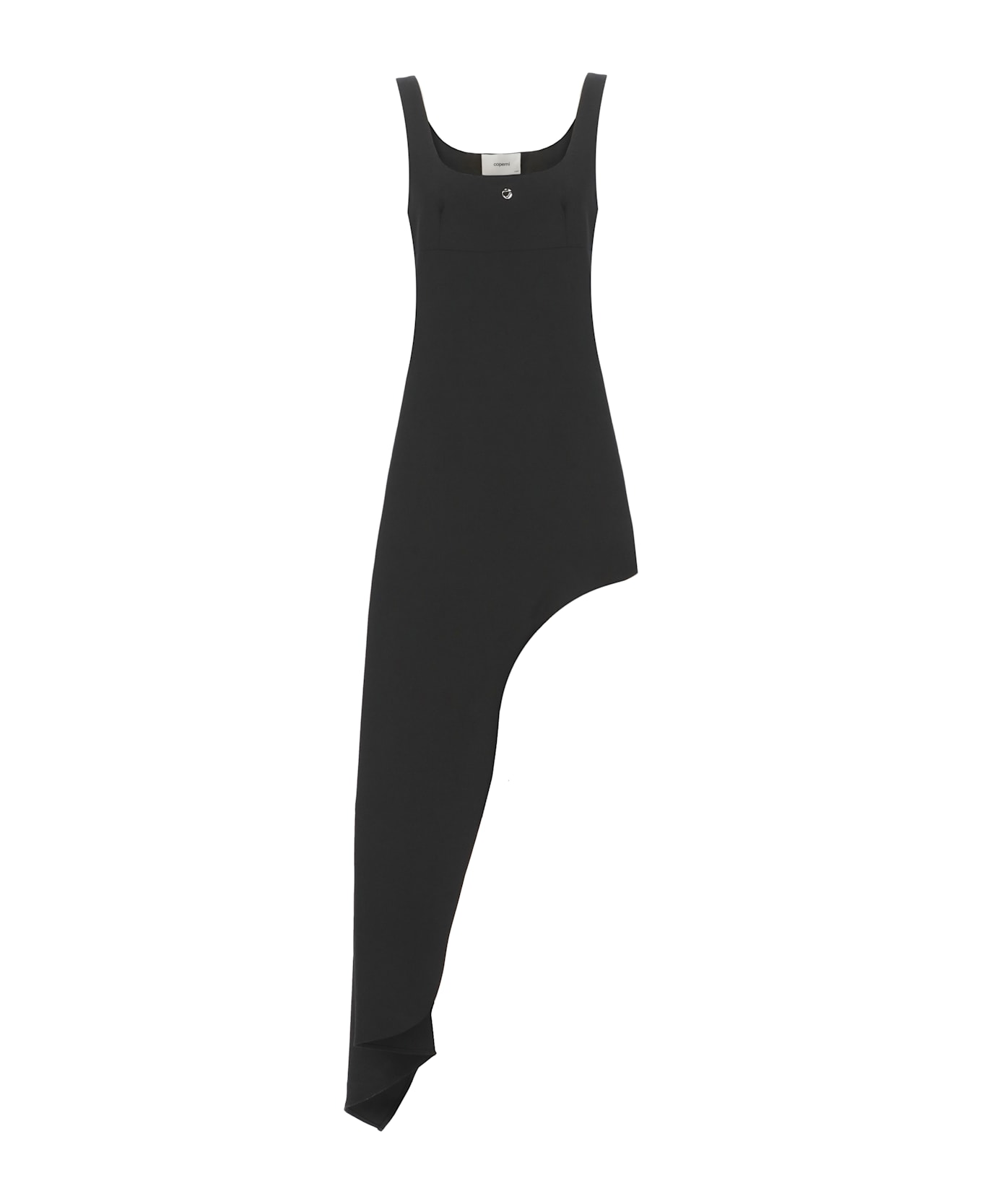 - Black Coperni dress for woman - Wide neck - Sleeveless - Front metal logo - Side vent