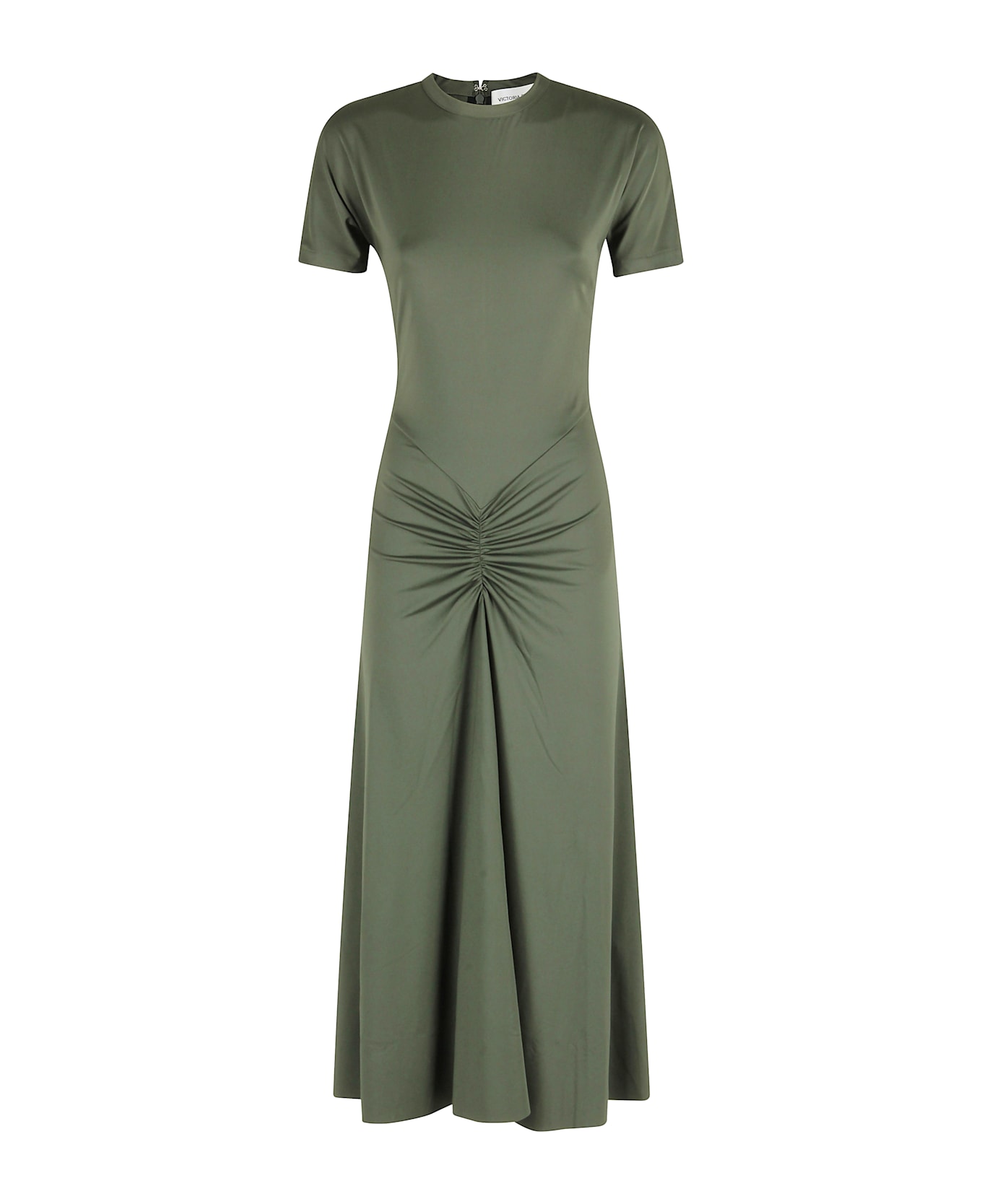 Dress - Victoria Beckham - Gathered waist model - Oregano color - Midi - Short sleeves - Round neckline - Draped front - Back zipper closure