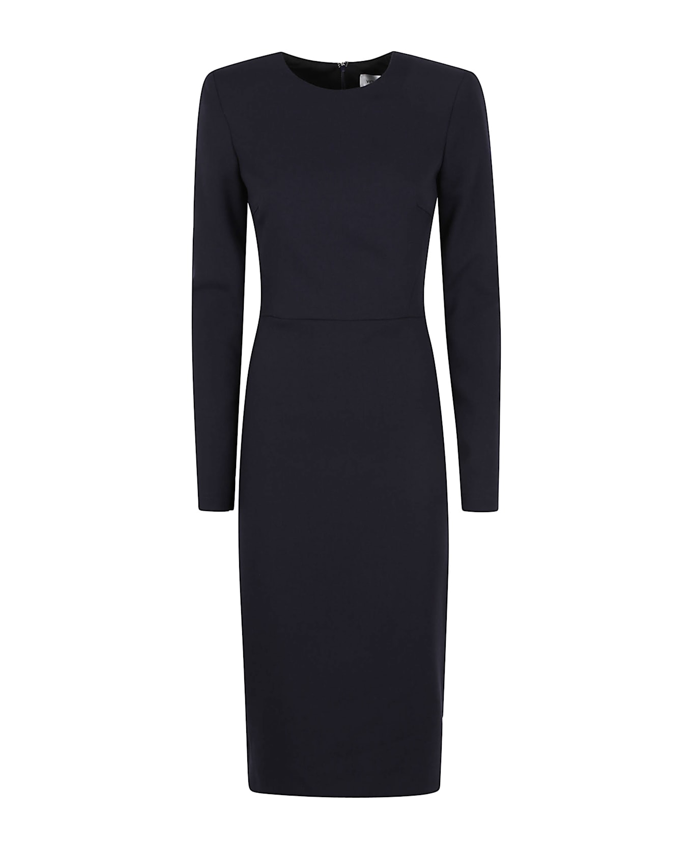 Tailored T-shirt dress by VICTORIA BECKHAM. Crew neck; long sleeves; fitted dress T-shirt has an hourglass silhouette with structured shoulders. Midi hem design.