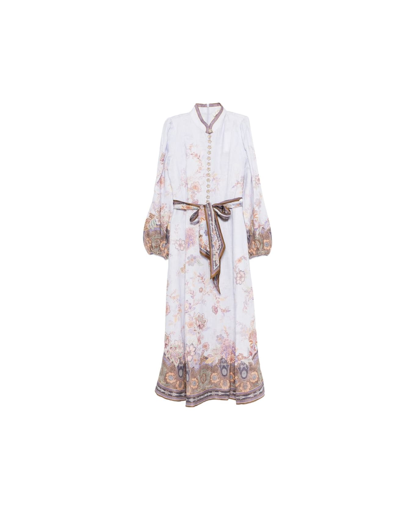 blue linen paisley print front button fastening long puff sleeves elasticated cuffs detachable waist tie Composition: Natural (veg)->linen/flax100. , 0%