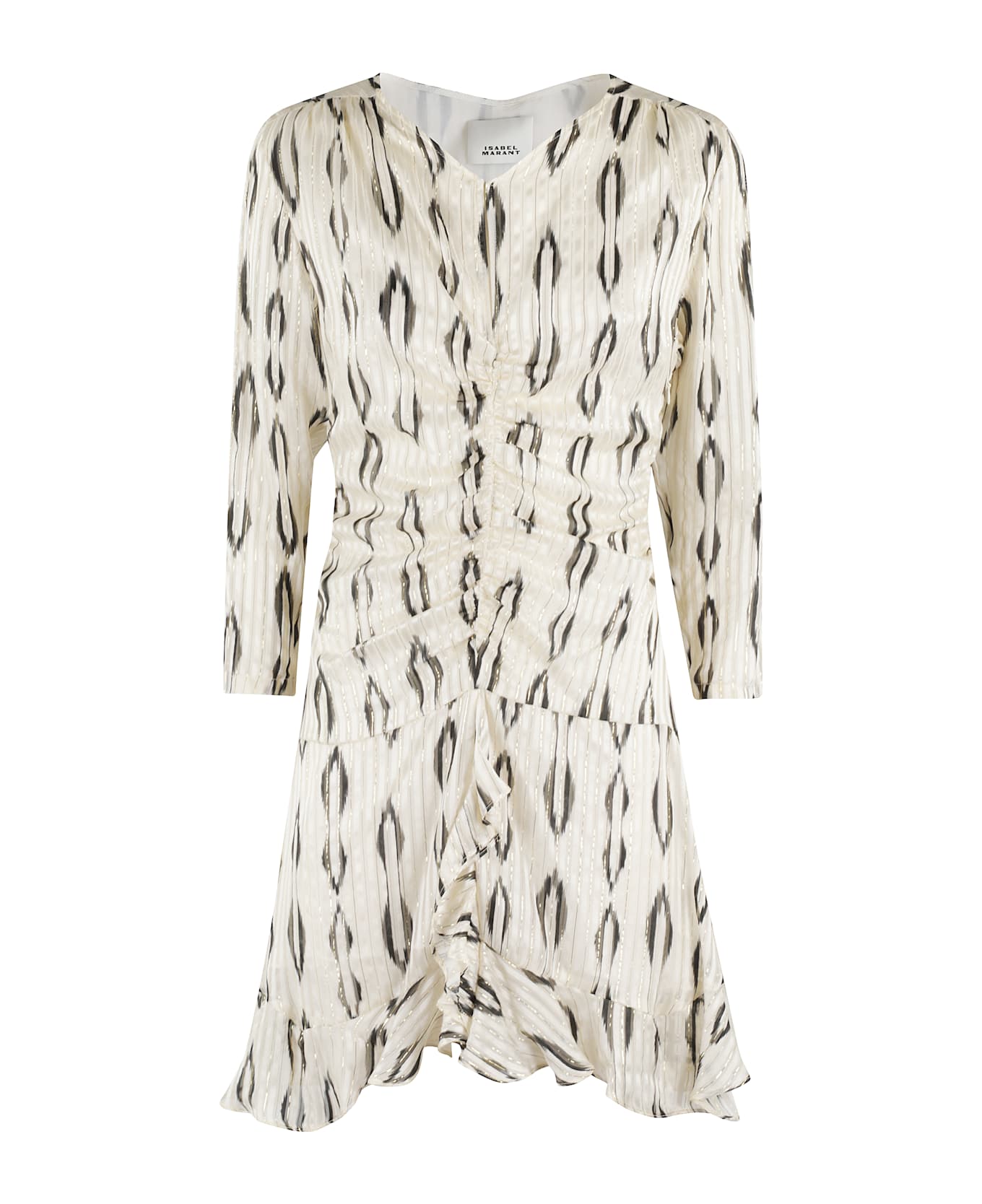 Octavia dress - Isabel Marant - Ecru and black color - Silk fabric with lurex pattern - V-neck - Cut-out sleeve - Draped front - Asymmetric hemline - Side zipper closure - Regular fit