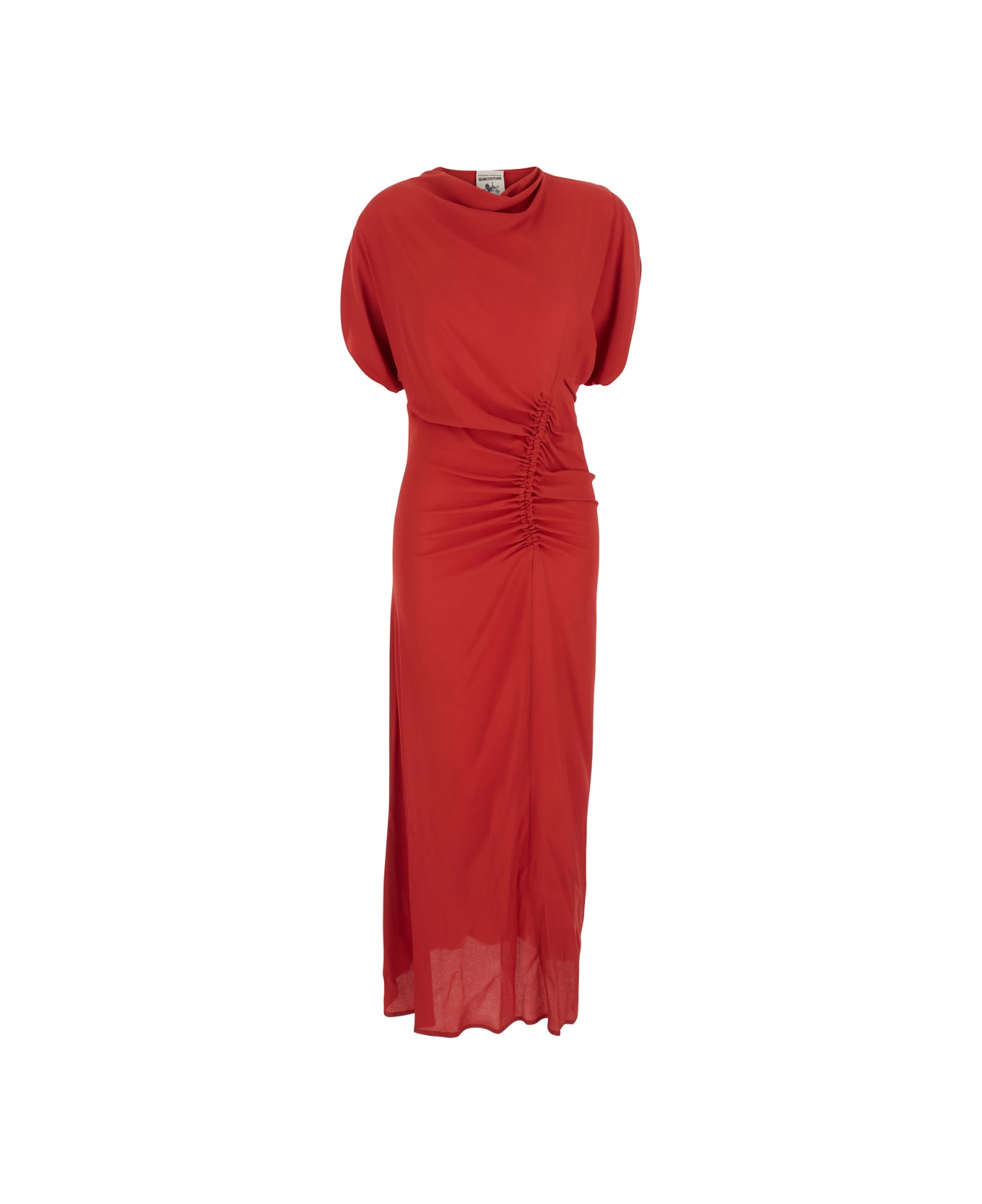 'santiago' Red Long Dress With Front Ruching Detail In Silk Blend Woman