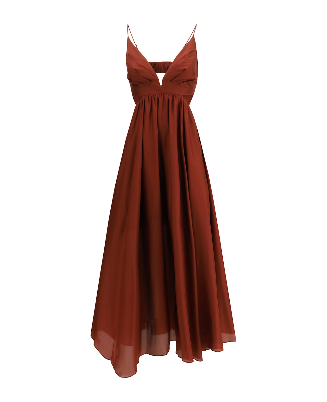 The wanderlust maxi dress by zimmermann embodies a refined sense of escape and effortless femininity. crafted in flowing silk, the design features a deep v neckline with soft ruching at the bust, adjustable straps and subtle side cut-outs that reveal the silhouette with measured elegance. the elasticated lower back and shirred bodice with hook-and-eye closure ensure a fluid, comfortable fit, while the generously gathered skirt moves with lightness. finished with functional side pockets and a discreet mini-length lining, this full-length dress balances sensuality and ease in true zimmermann style.