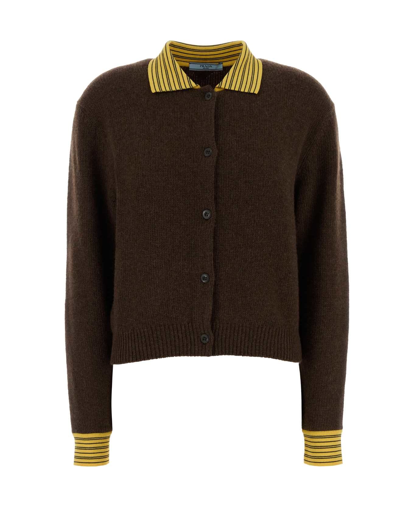 Brown Cashmere Blend Cardigan from Prada