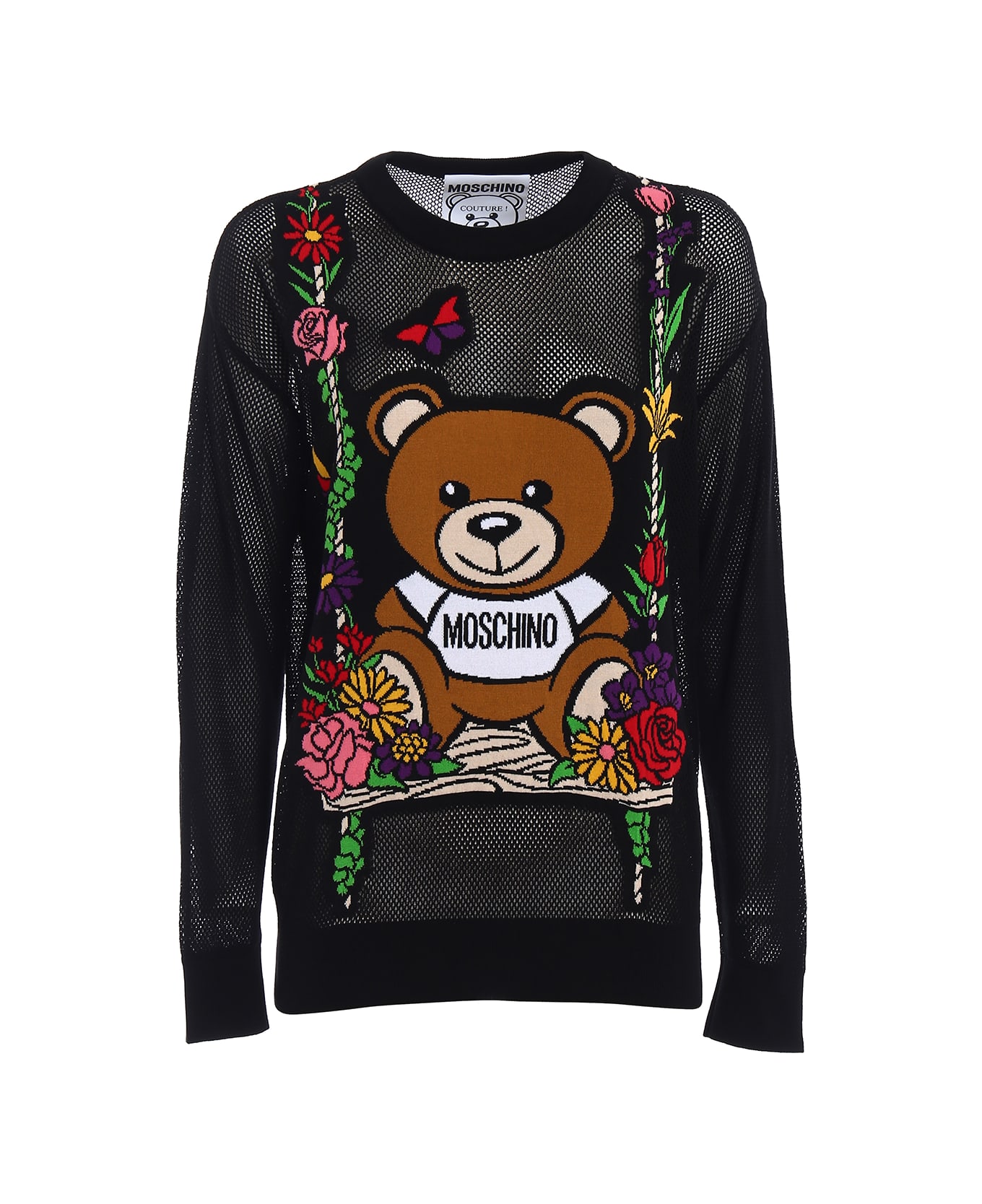 Teddy Sweatshirt from Moschino: Black Teddy Sweatshirt with round neck, long sleeves, elastic hem and cuffs and knitted teddy bear design.