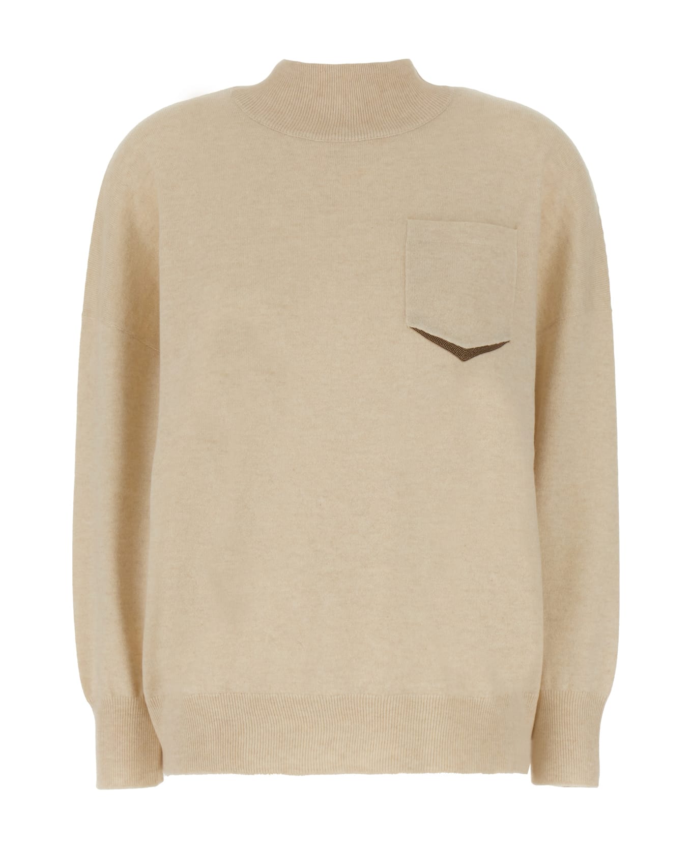 Sweater realized in pure cashmere characterized by a chest pocket with metal details. -Ribbed crew-neck, cuffs and hemline -Loose fit