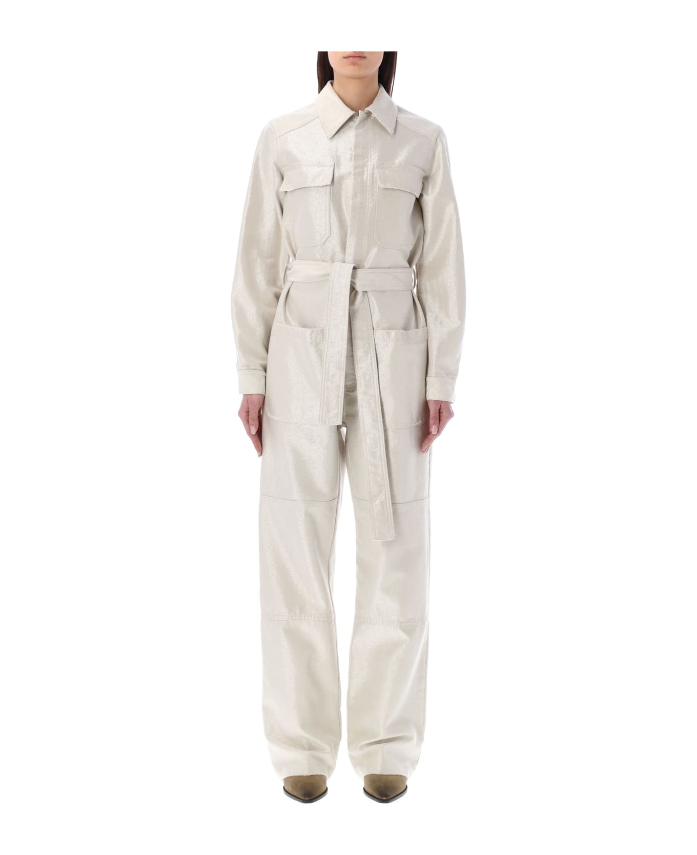 Cotton Blend Metallic Denim Freddy Jumpsuit By Golden Goose. Featuring: