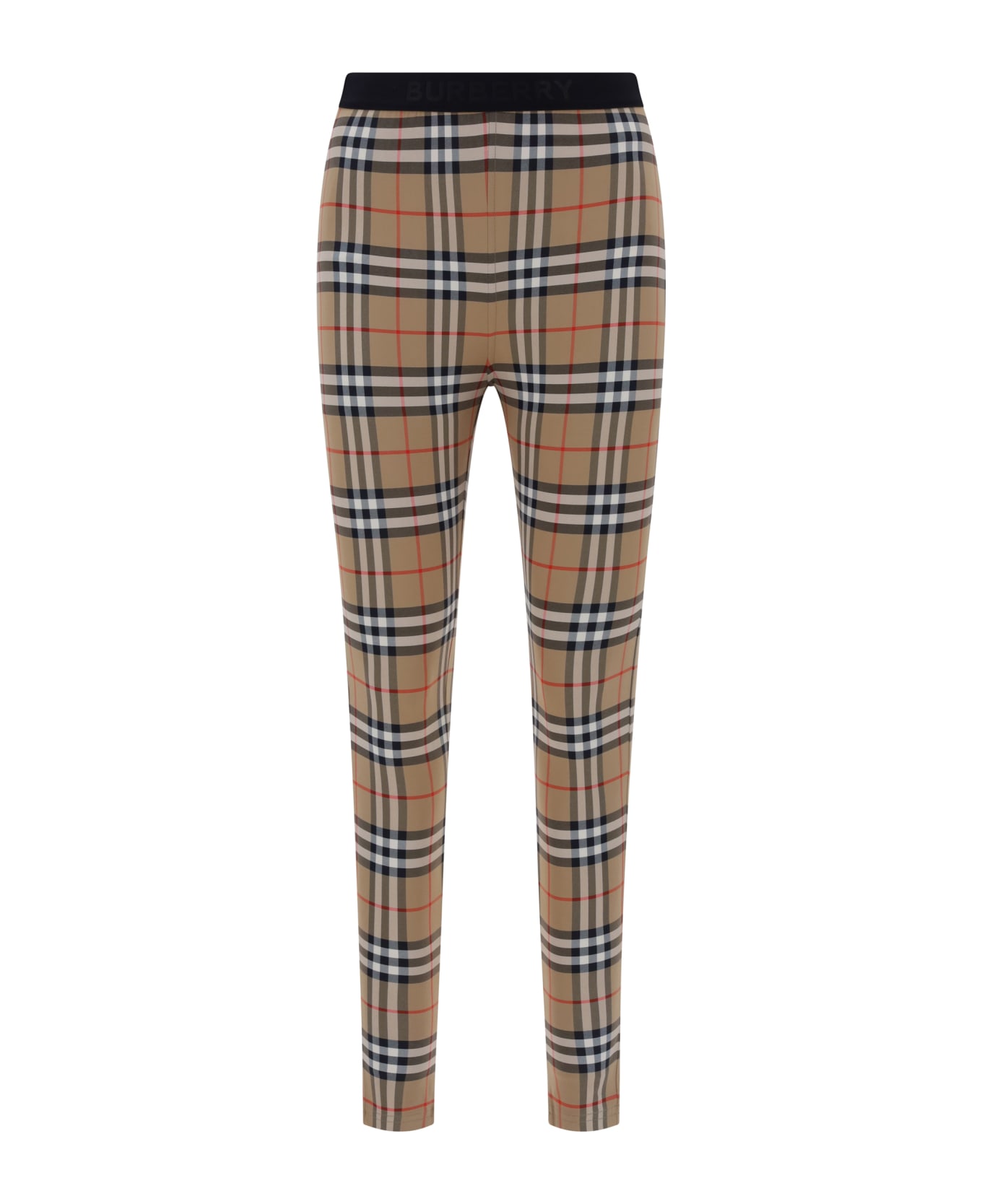 The archive check leggings by burberry are an elegant and trendy piece, characterized by a slim fit that enhances the figure. the contrasting elastic waistband adds a distinctive and comfortable touch, while the design is enriched with the iconic archivio check pattern of the brand, repeated uniformly across the entire surface. this tartan motif, a symbol of burberry tradition, gives the leggings a sophisticated and contemporary look, perfect for those seeking an elegant but informal style.