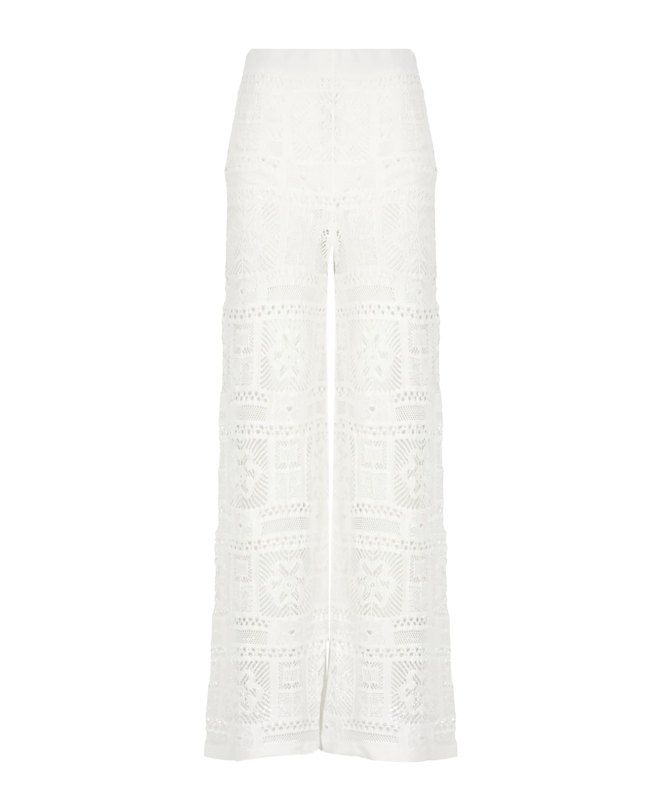 - White D. Exterior cotton pants for woman - Elastic waist - All-over perforated and lace details