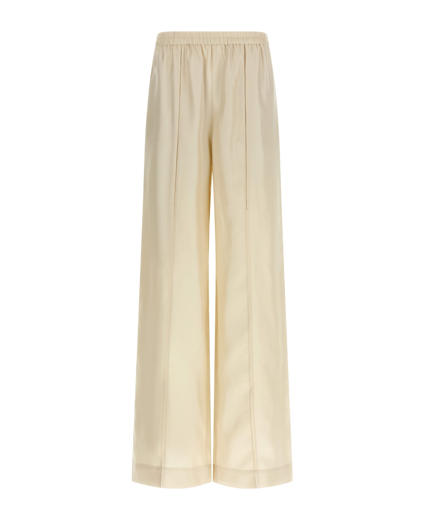 'Lars' silk twill pants with lace stitch insert on the front, wide and straight leg, medium waist, elastic waistband, pockets. Composition: 100% silk