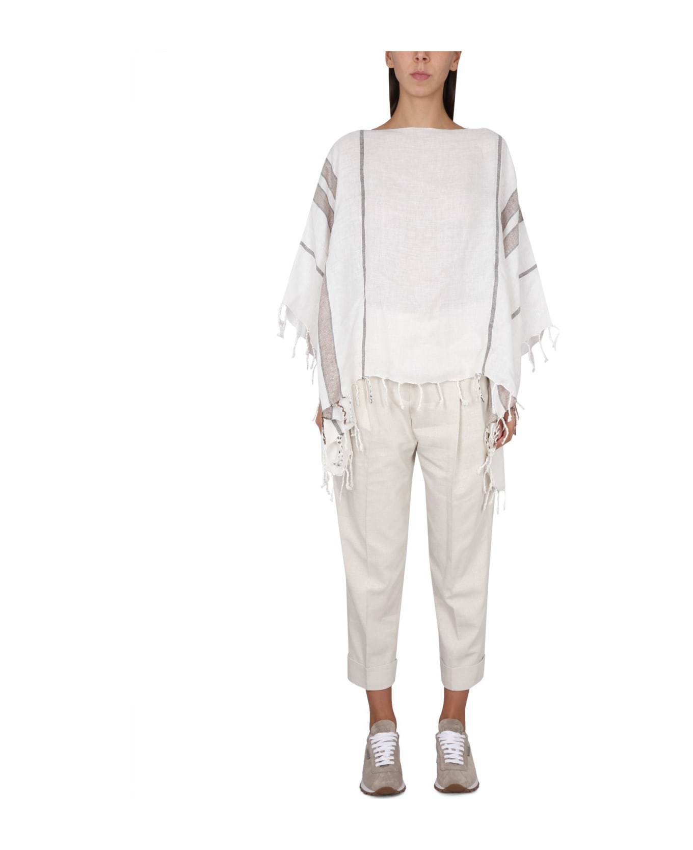 - Striped Detail- Fringed Edge- Asymmetrical Hem- 96% Linen, 2% Polyester, 1% Polyamide, 1% Metallic Fiber- Made In Italy- The Model Is 180 Cm Tall And Wears One Size Fits All