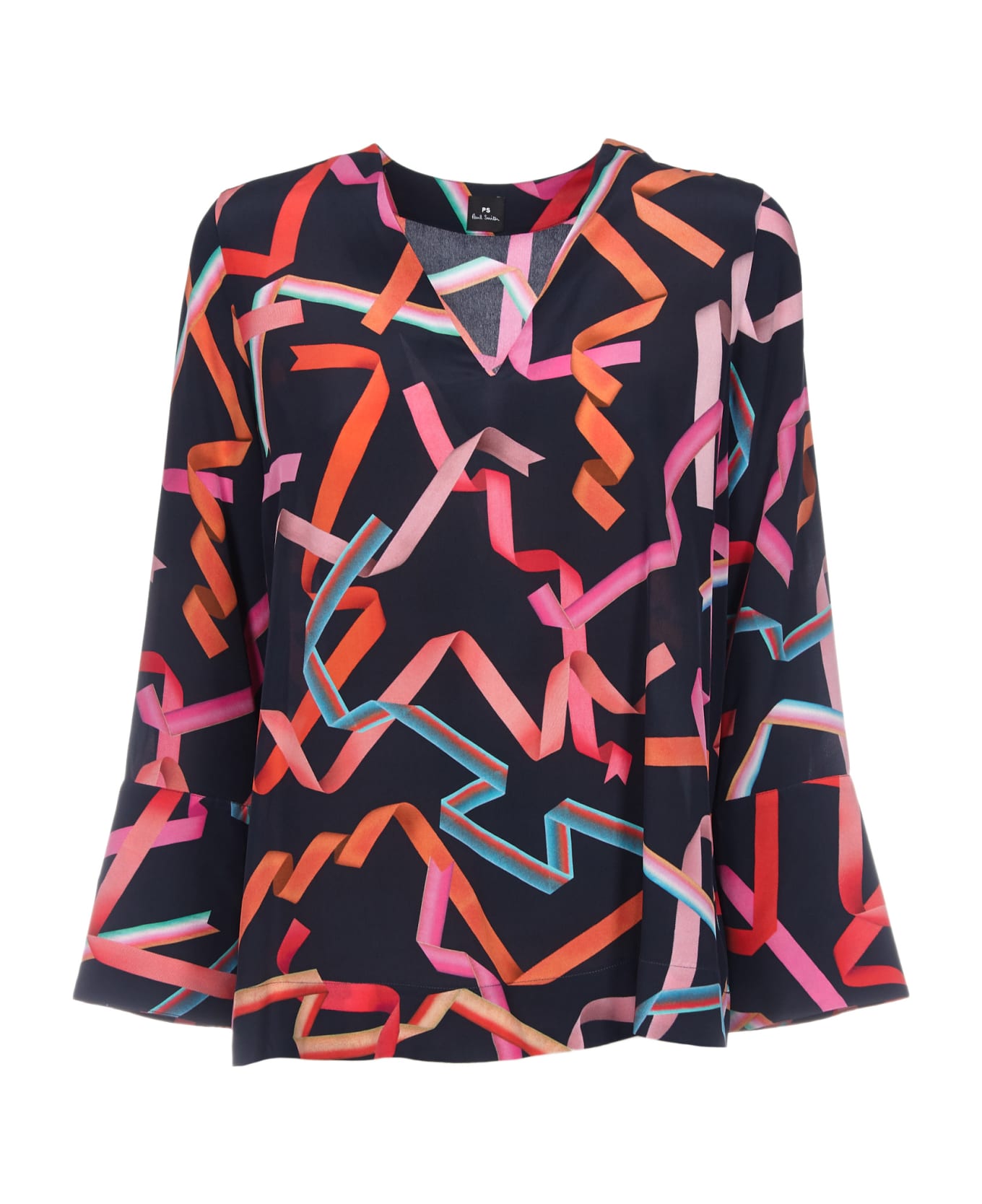 Abstract Print Top from Paul Smith: Black Abstract Print Top with V-neck, multicolor abstract details and long sleeves. Composition: 100% silk. Made in Portugal.