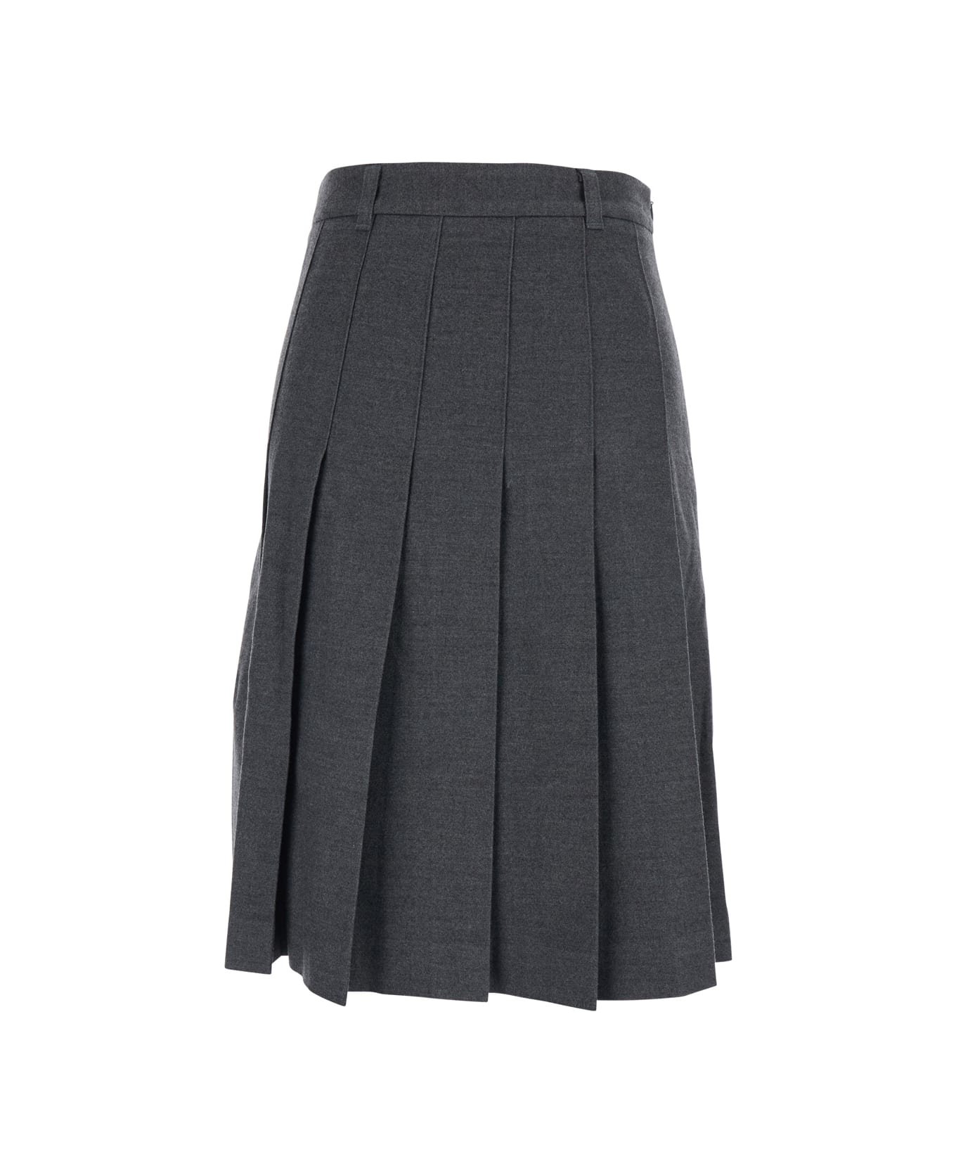 Midi skirt Grey Belt loops Side concealed closure Straight hem Pleated design Wool Regular fit