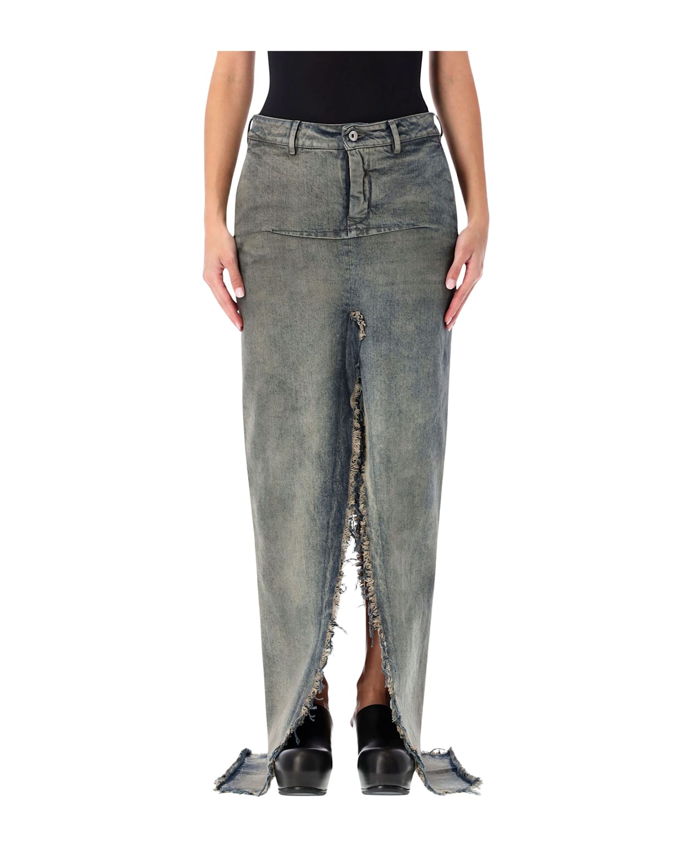 Rick Owens Long Denim Sliced Skirt