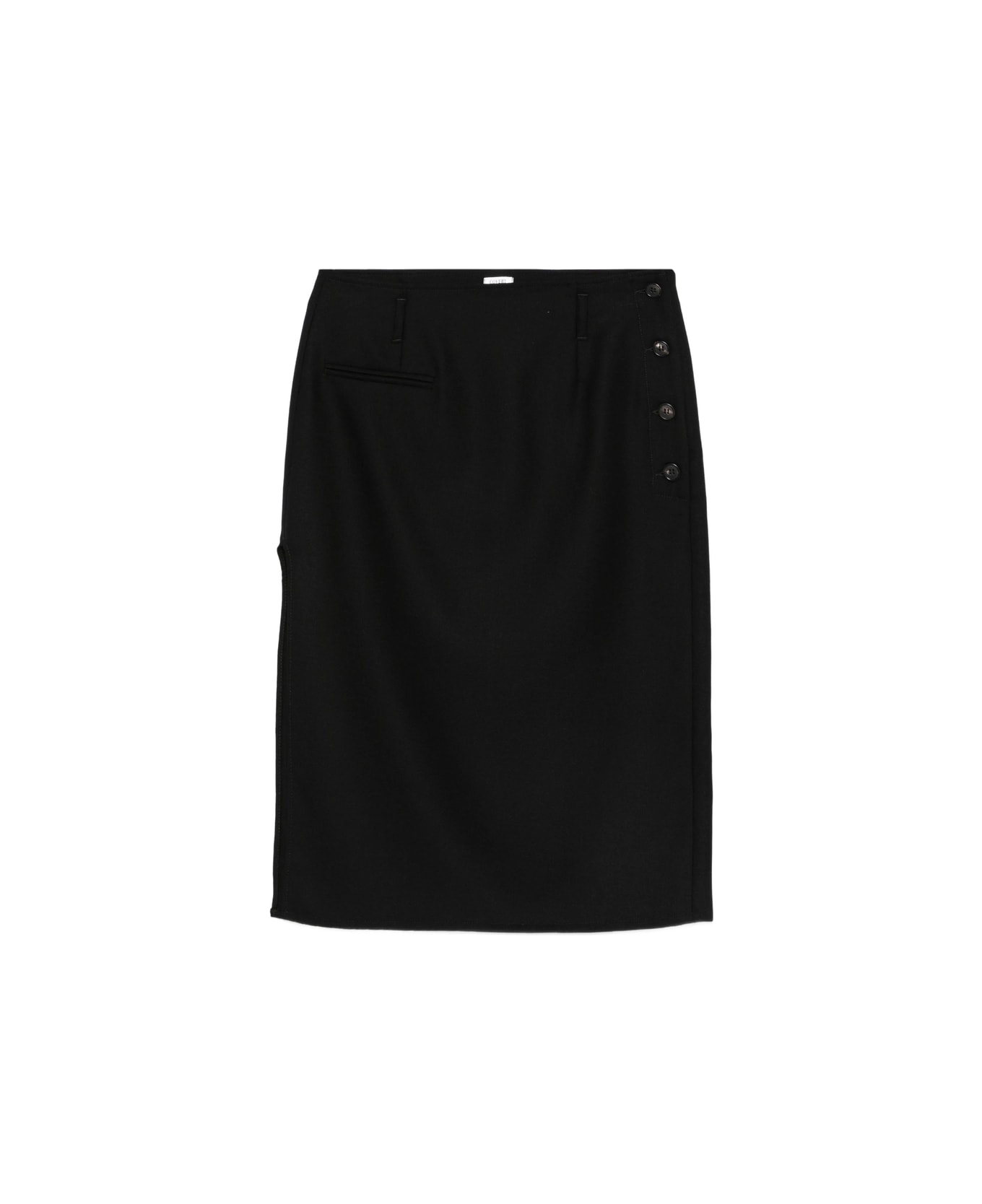 black side button fastening pencil style welt pockets straight hem