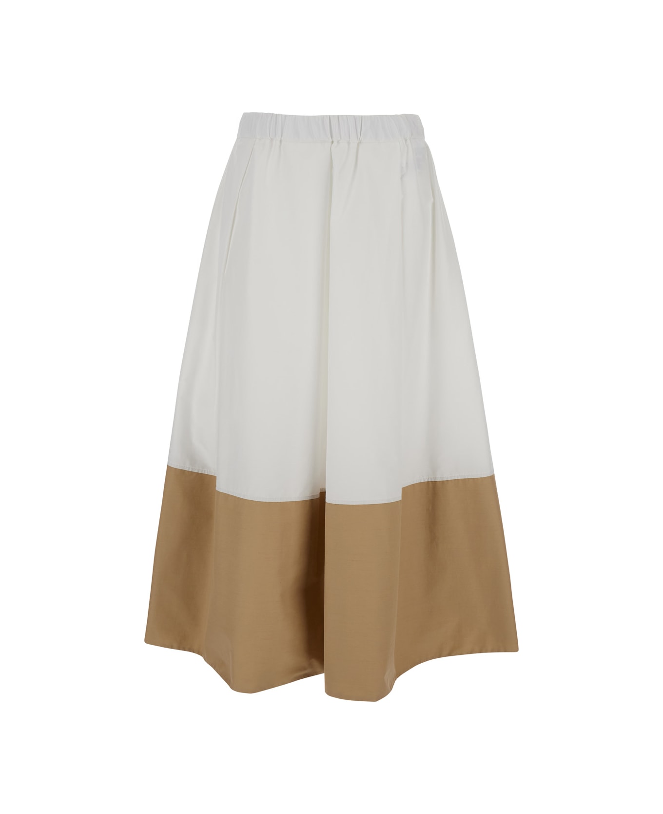 White Skirt With Elastic Waist And Contrasting Bottom Part In Cotton Blend Woman
