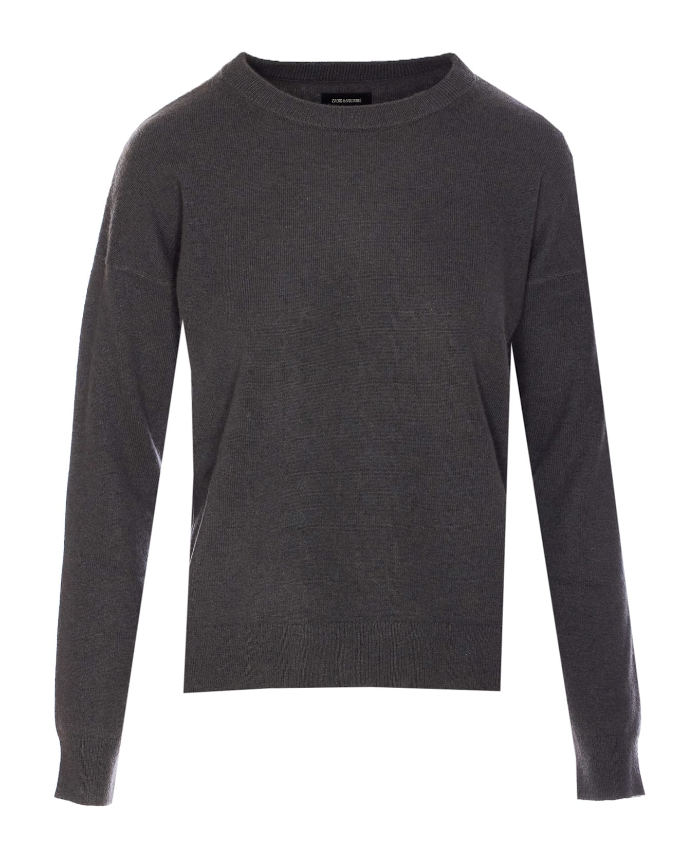 Zadig&Voltaire dark grey Cici Ws patch sweater, crewneck, star patch detail on sleeves