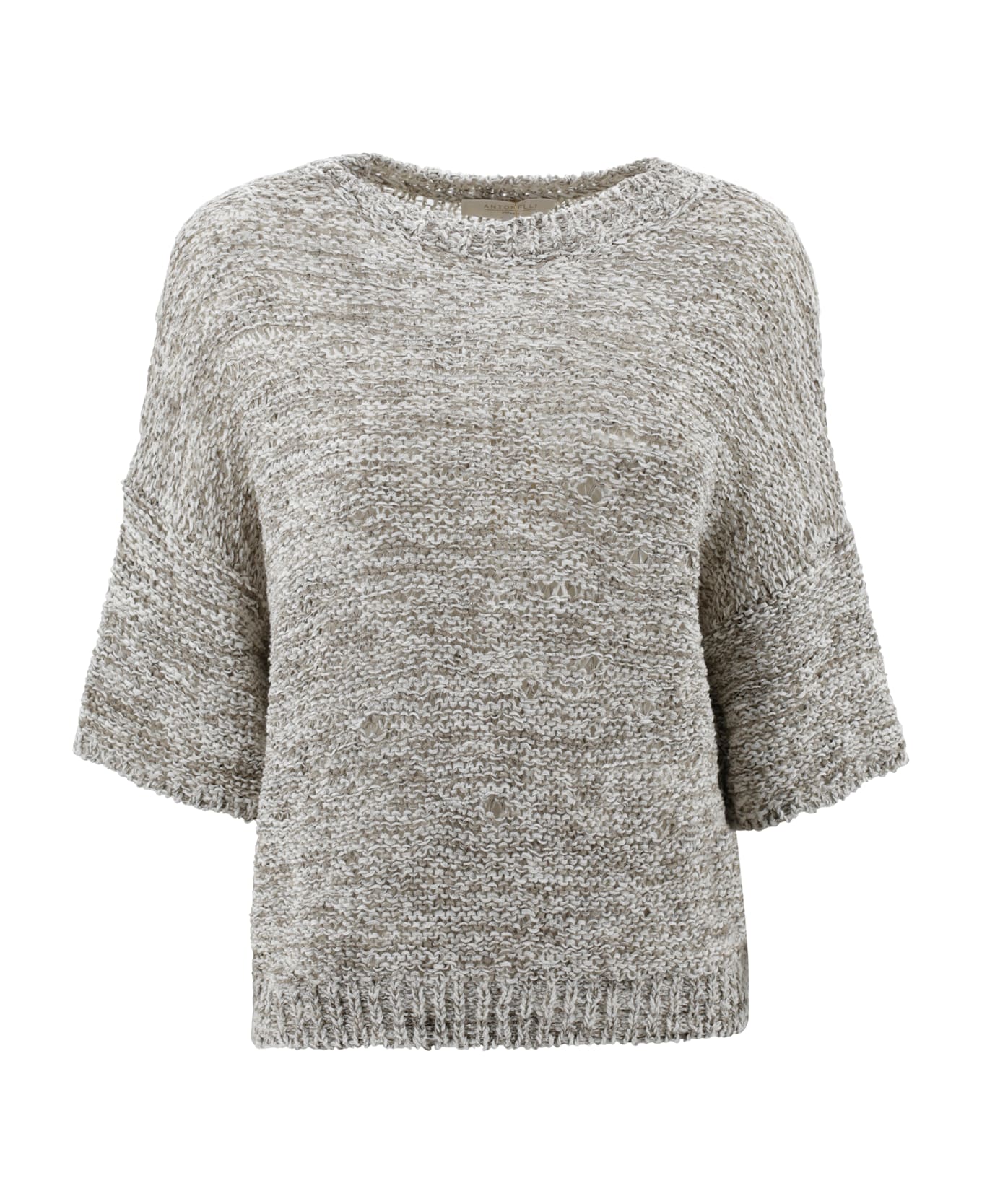 Cotton-blend jumper with crew neck, woven weave and 3/4 sleeves.