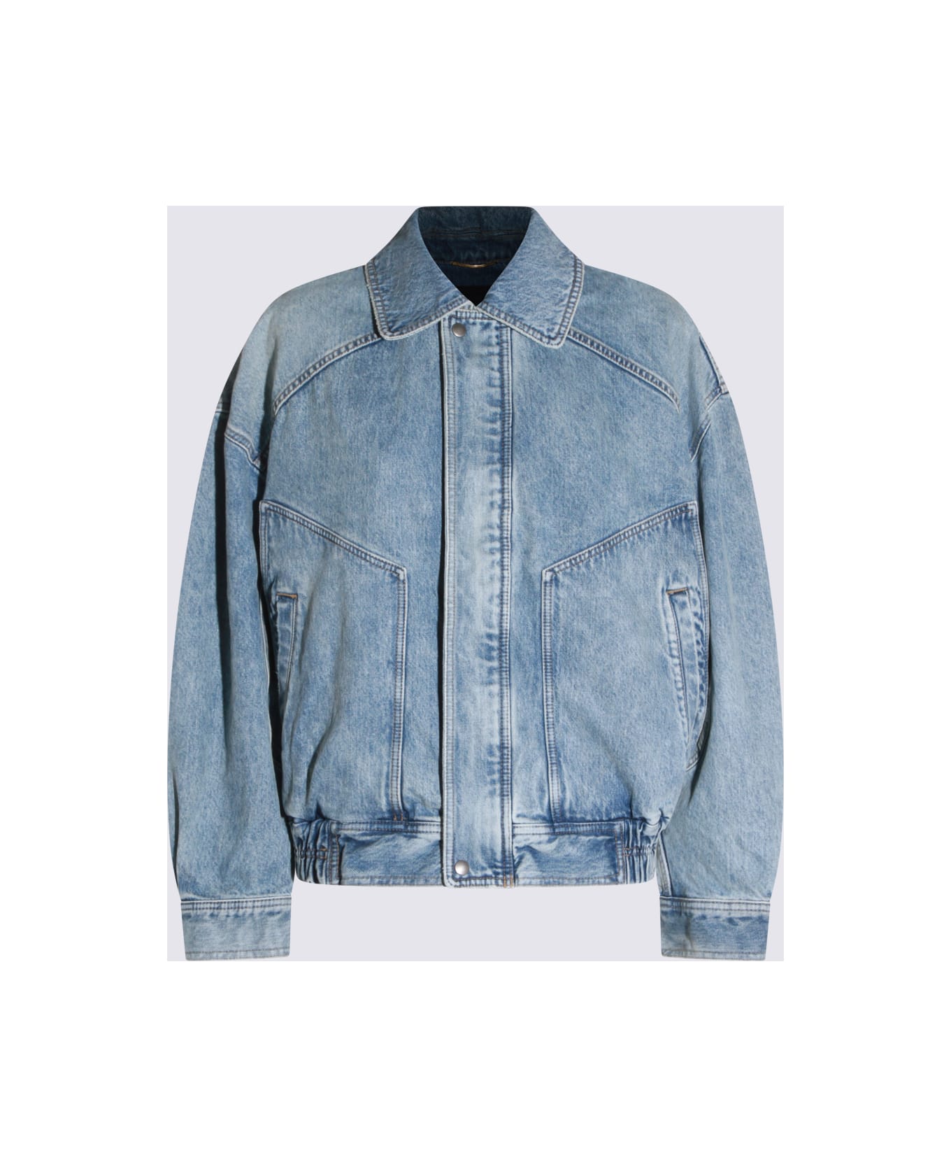 Light blue cotton knitwear from Saint Laurent featuring classic collar, long sleeves, fronta fastening, pocketys and regular fit. Composition: _, 100% Cotton