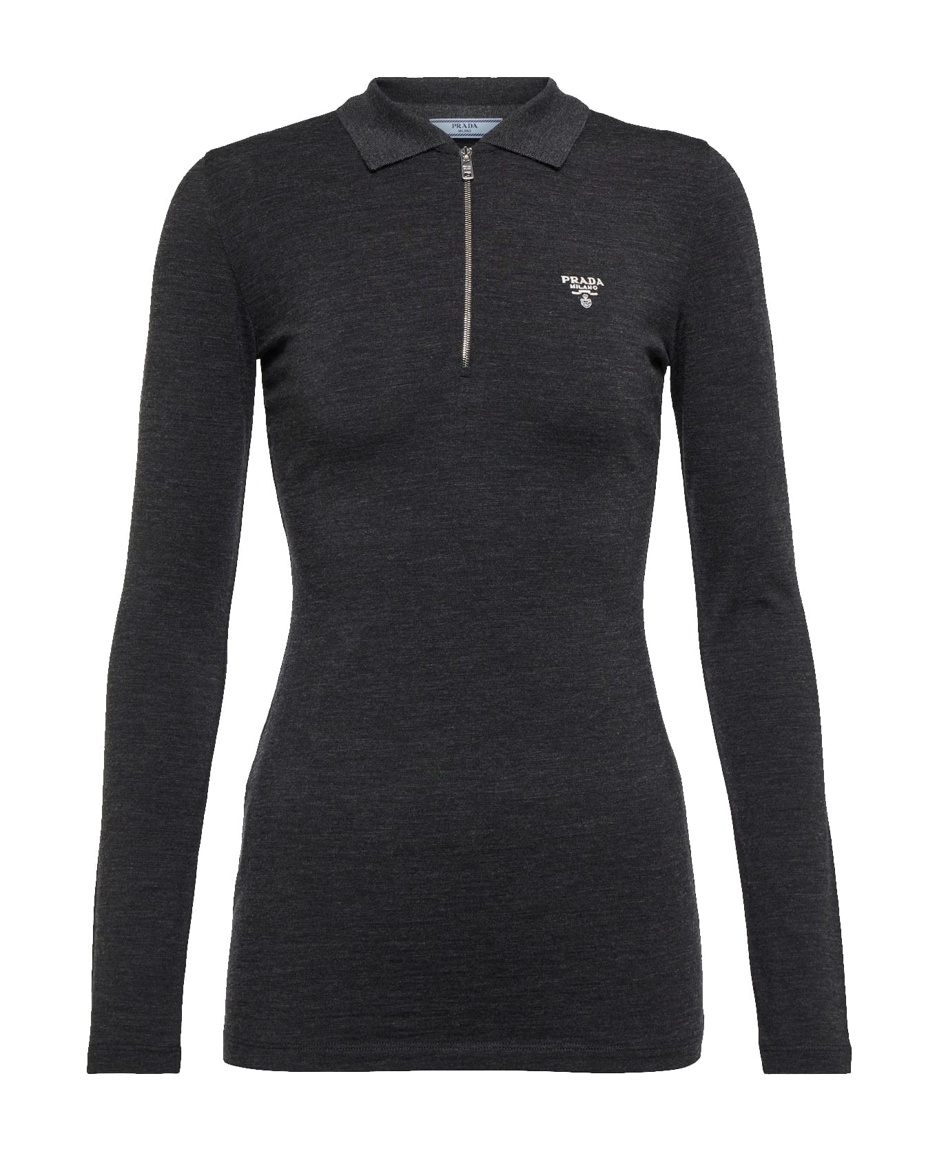 - Composition: 68% Virgin Wool 28% Silk 4% elastane - Long sleeves - Ribbed trims - Front zip closure - Embroidered logo detail - Specialist wash