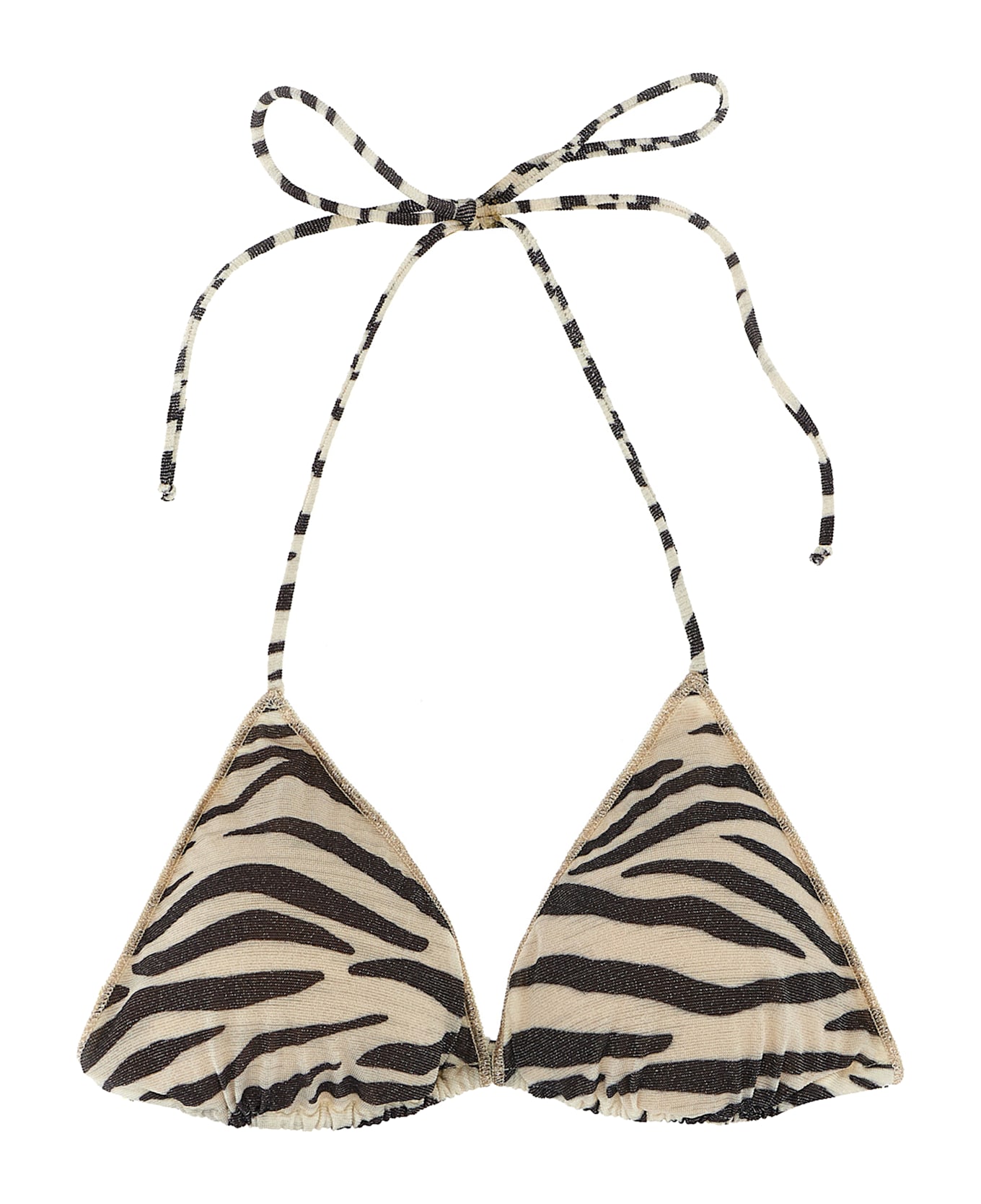 'Leah' triangle bikini top in stretch lurex fabric with animal print, removable cups, adjustable laces closure. Composition: 64% viscose 17% polyester 15% polyamide 4% elastane