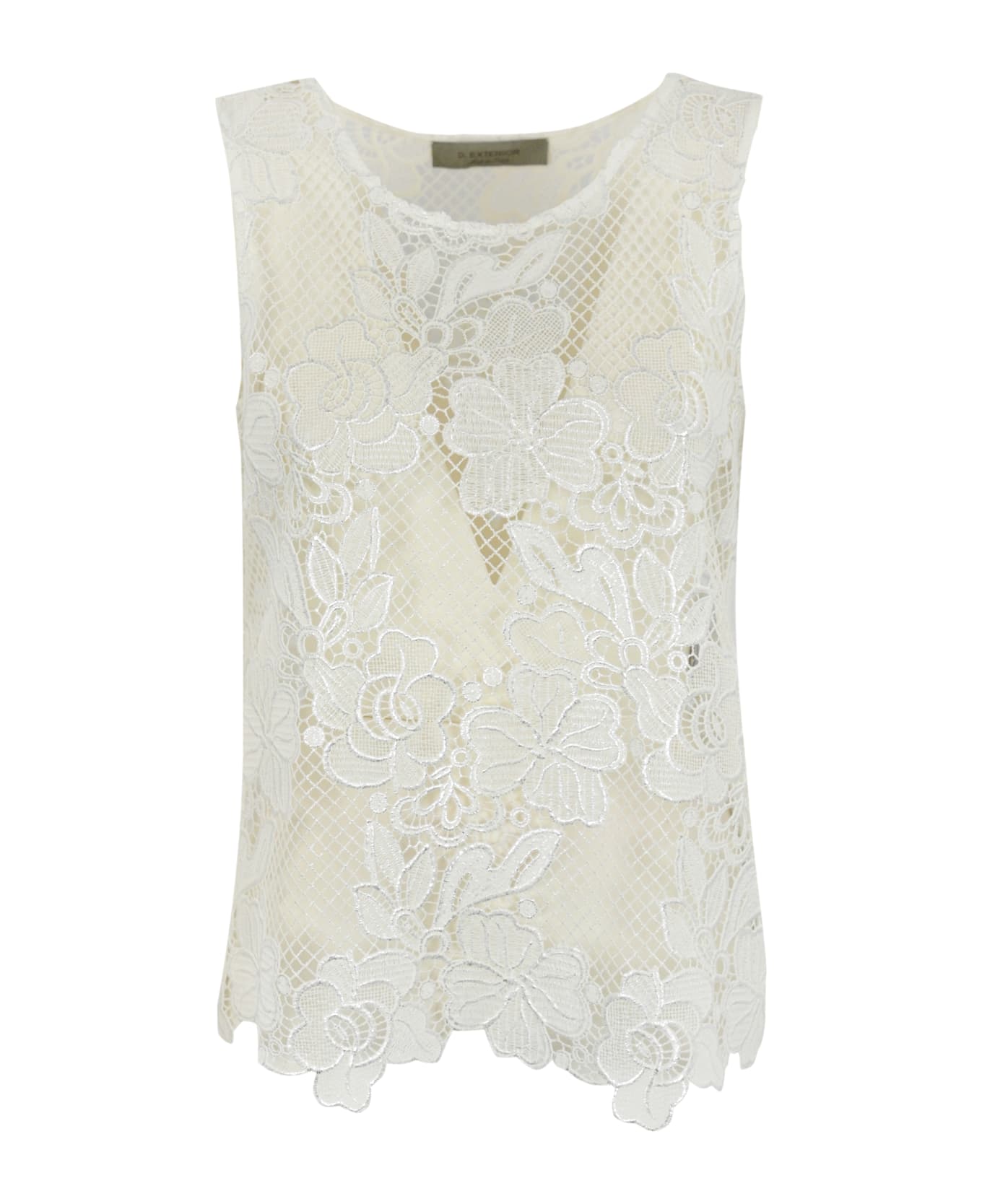 women's lace top: macrame lace sleeveless crew neck all-over floral design regular fit composition: 100% polyester 97% polyester, 3% elastane
