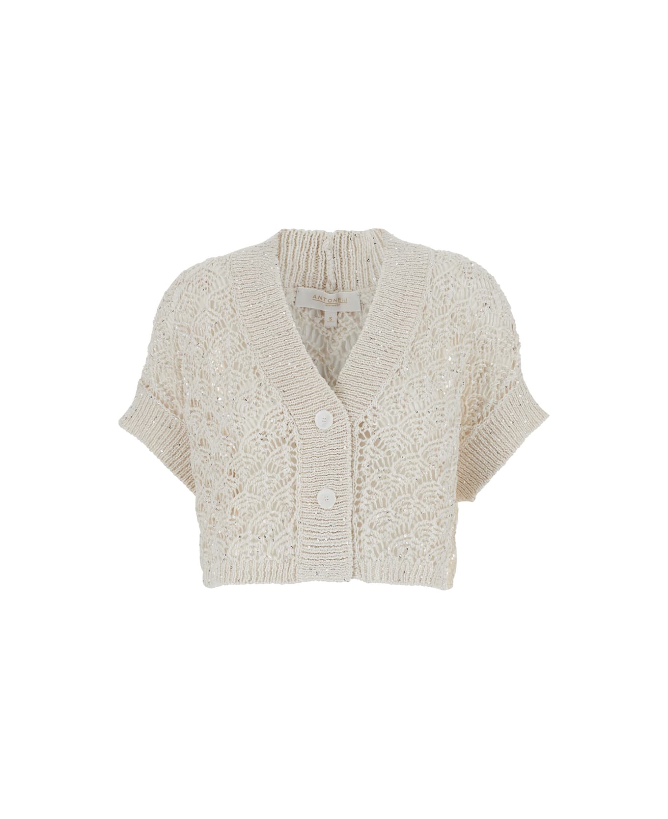 'bizet' White Knit Cardigan With V Neck In Linen And Cotton Woman