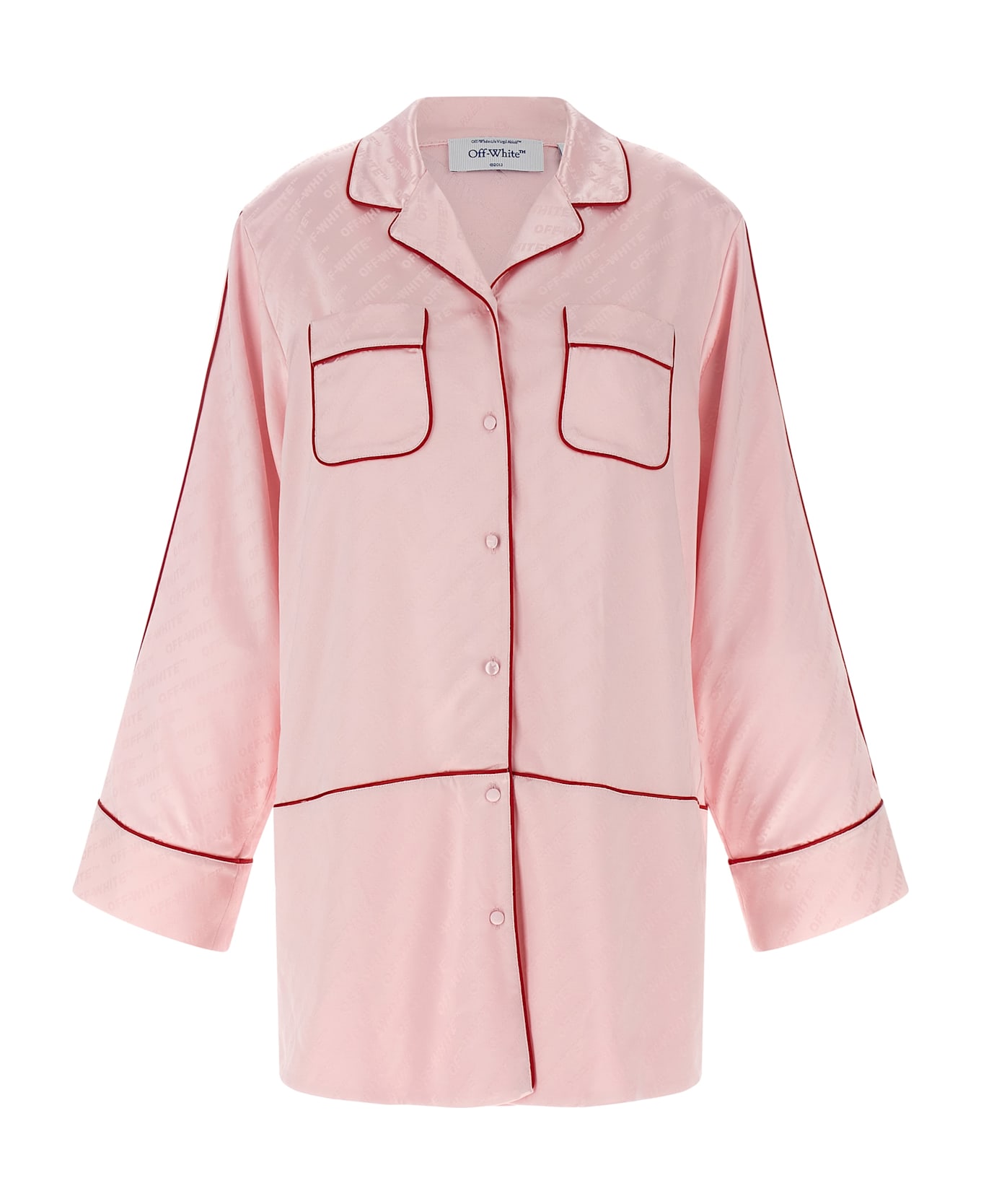 Long 'Jacquard Satin New Roxy Pajama' satin jacquard shirt with all-over logo solid color piping, pajama style, pockets, front button closure, long sleeves with cuffs and dropped shoulder.