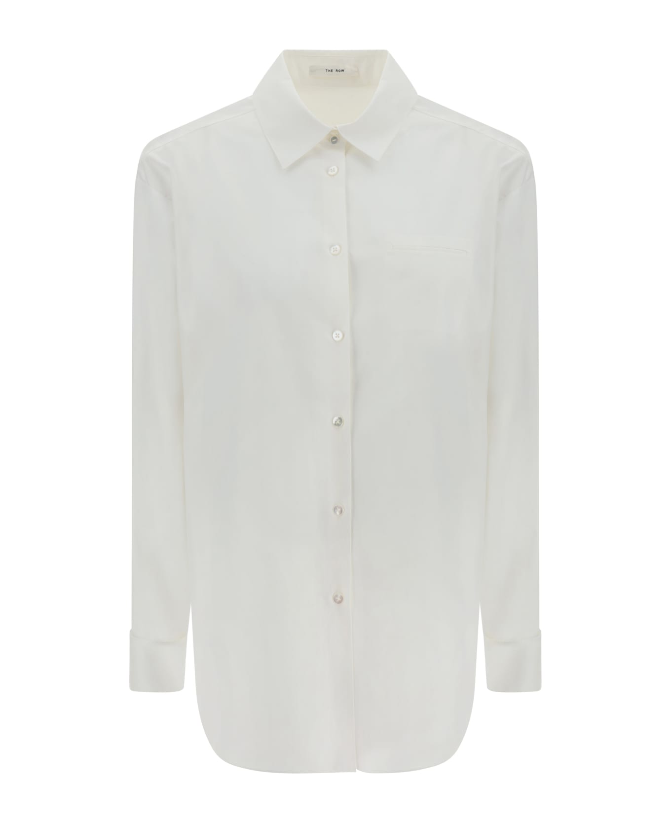 Cotton moon shirt by the row features a classic collar, button-adjustable cuffs, a front closure with matching buttons, a patch pocket on the front, and an oversize fit.