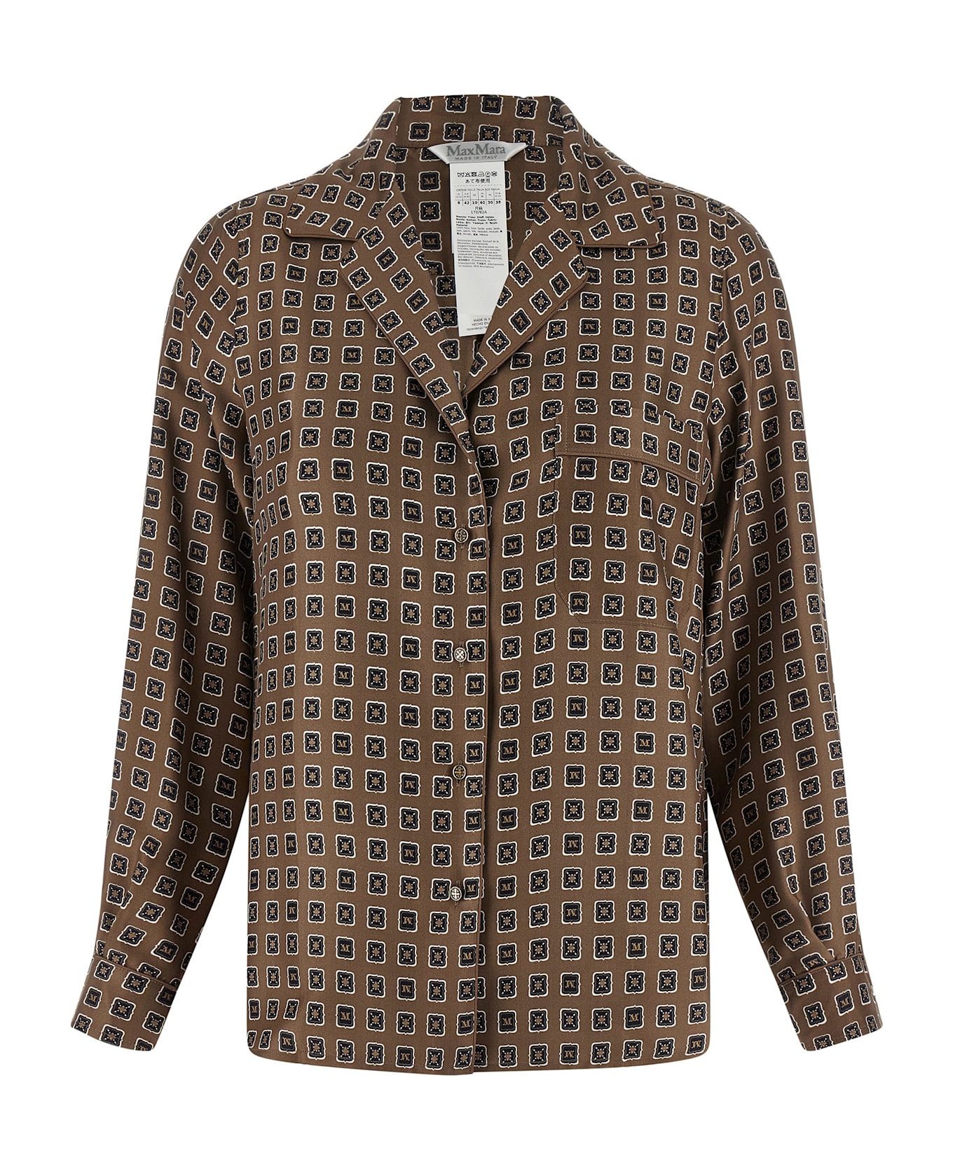 MxmDisco' pure silk twill shirt with all-over archive E. Marinella print, bowling collar open on the front, front button closure, breast pocket, long cuffed sleeves. Composition: 100% silk