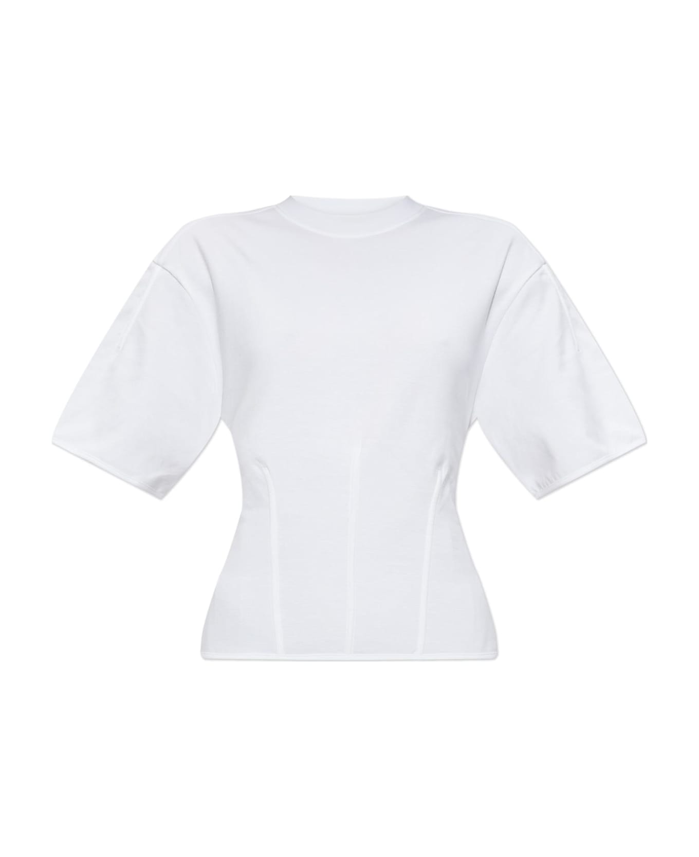 Experience refined minimalism with this Round-Neck T-shirt by Alexander McQueen. Crafted from exquisitely soft, high-quality cotton with a touch of stretch, this piece presents a modern silhouette that gently contours the waist while its relaxed, elongated sleeves and dropped shoulders imbue each look with effortless sophistication. Distinctive vertical stitching on the front artfully sculpts the figure, lending a tailored finish and an architectural presence. Offering a smooth, opaque texture and an immaculate, pattern-free surface, this top is devoted to pure elegance free of logos or embellishments, it makes a statement through craftsmanship alone. Why choose this product? Signature Alexander McQueen design blending tradition with innovation Luxurious, breathable material with superb softness and structure Flattering modern fit highlighted by fine vertical seaming Versatile and refined, suited for both elevated and everyday ensembles