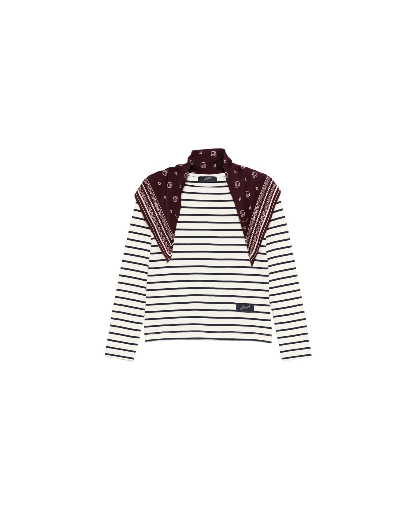 beige navy stripe long sleeves boat neck burgundy bandana detail cotton material
