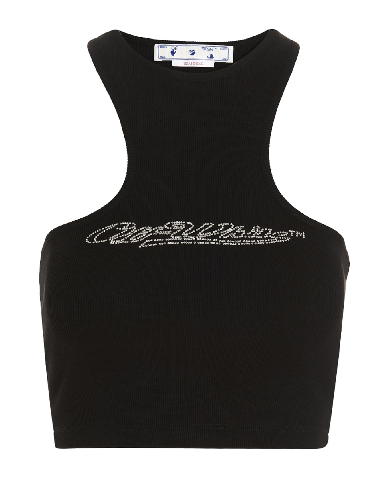 Bling baseball' ribbed stretch cotton top with cropped style and sequin logo.