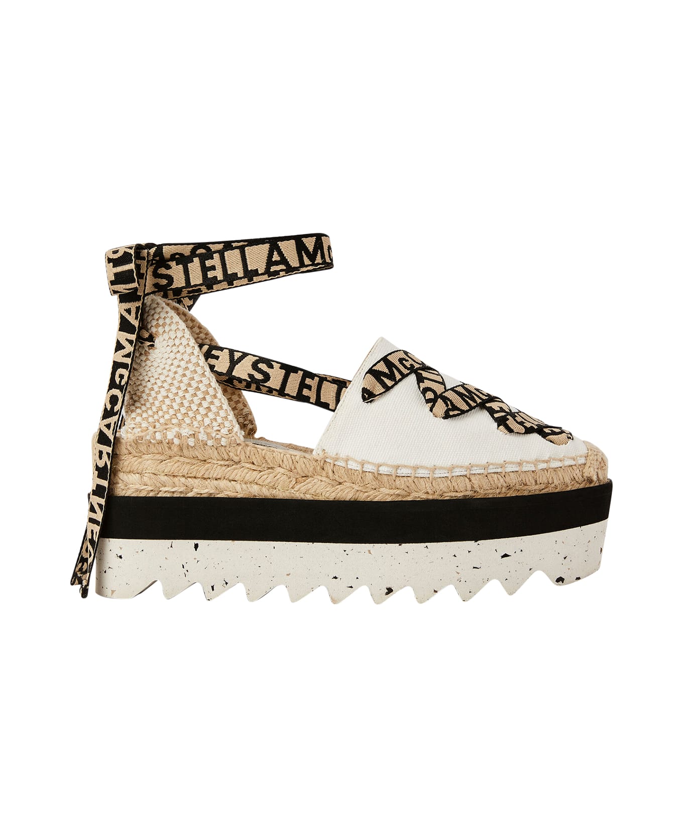 Stella Mccartney white Gaia espadrilles, platform model, string logo details, fabric upper