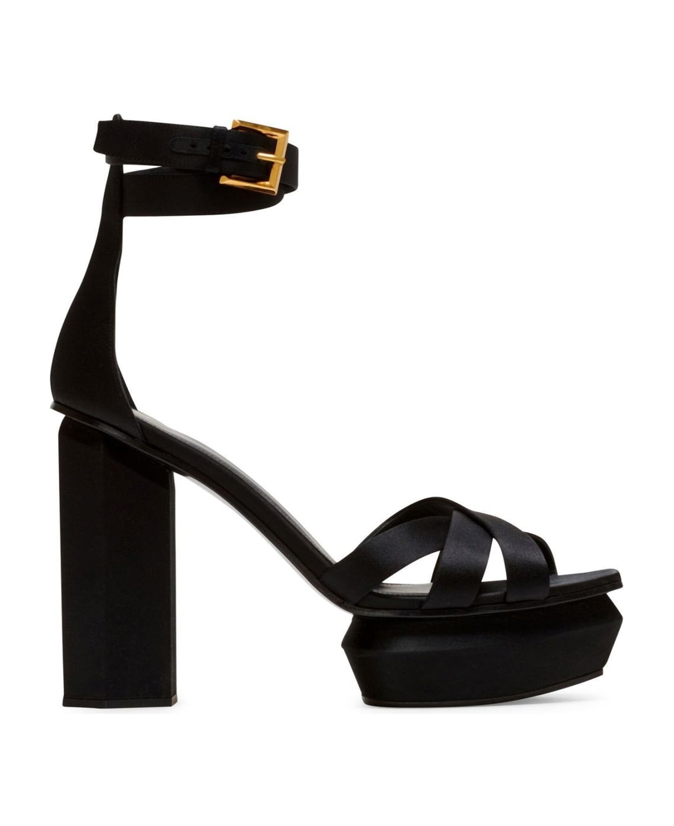 Composition: 100% Silk Inner: Leather Insole: Leather Sole: Leather Open toe Platform 4 cm Adjustable ankle buckle closure Heel 14 cm Made in Italy