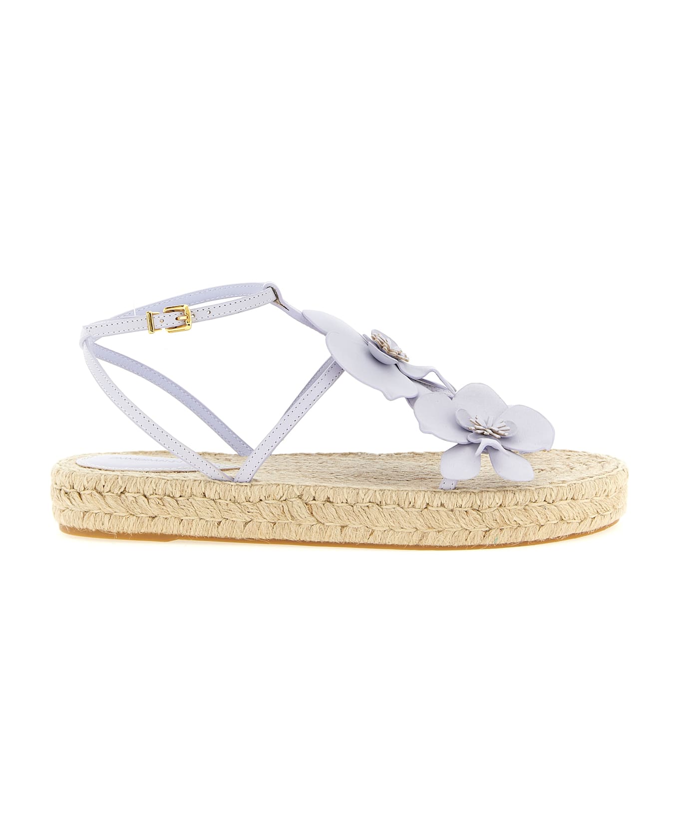 Leather sandals, tone-on-tone leather 'Orchid' details on the front, espadrilles style with rope platform midsole, adjustable ankle strap, rubber sole.