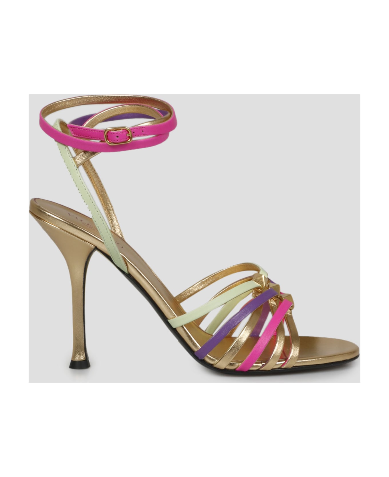 Rockstud Strappy sandals by Valentino Garavani, in laminated nappa leather. - Braided leather straps on the front and at the ankle