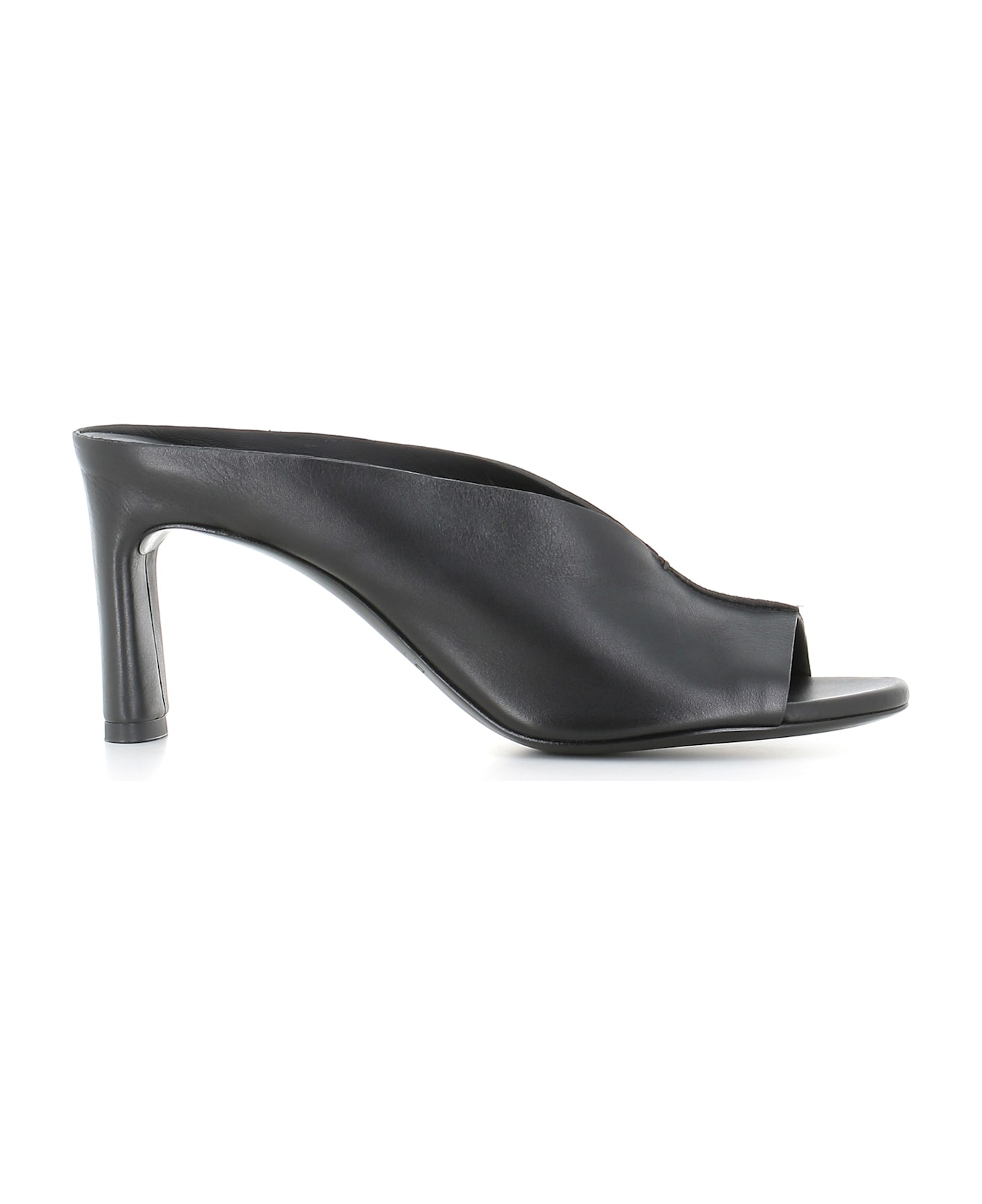Black woman soft leather Mule by Del Carlo, featuring by an open toe and a 'V' front cut. Unlined interior. Leather sole. Round heel: 8,5 cm Composition: Leather