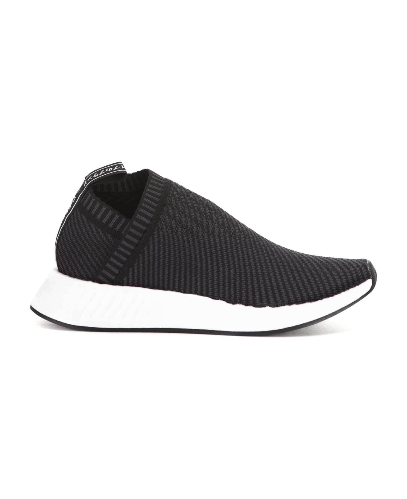 Nmd Cs2 Slip On Sneakers from Adidas: Core Black Nmd Cs2 Slip On Sneakers with slip on style , sock-like construction, molded eva midsole and signature nmd heel pull