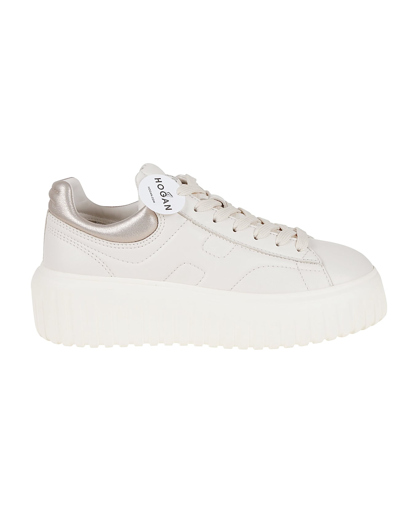 Hogan H-Stripes sneakers in nappa leather BY HOGAN. Extralight rubber sole with vertical stripes and waves on the tread; upper edge, with stitching on the heel, has a soft padding. Side H detail that extends all along the side with tone-on-tone stitching. Total height 5. 8cm.