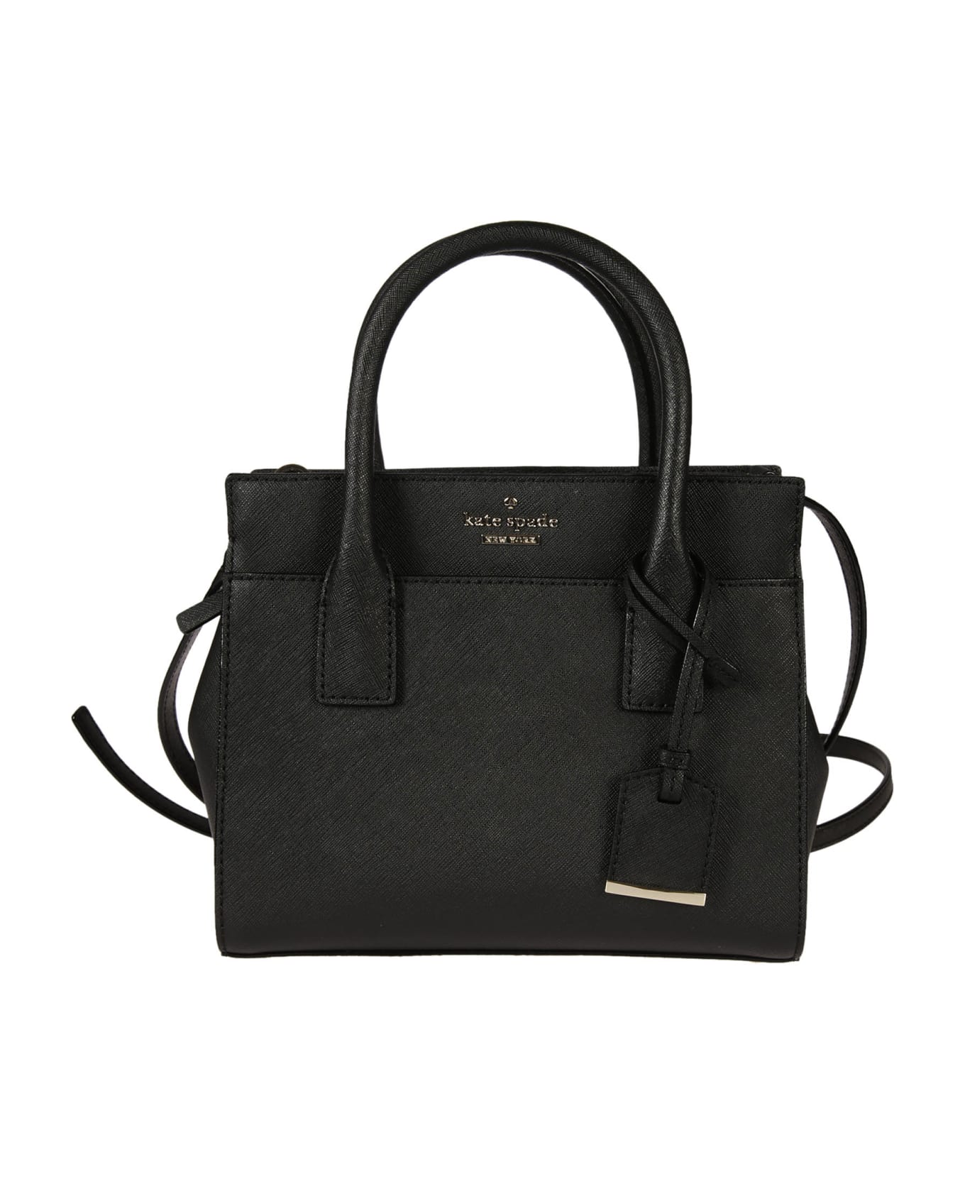 Square Tote from Kate Spade: Black Square Tote with double top handle, front logo plaque, top zip fastening, internal zip pocket and stud feet.