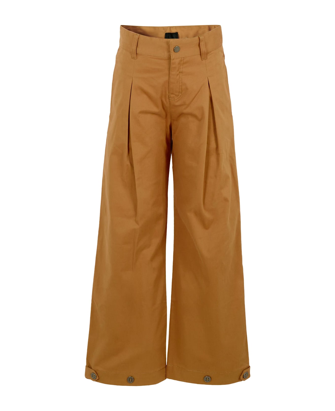 Beige trousers from the luxury brand Givenchy Kids, made of cotton twill. They feature a front zip and snap button fastening, belt loops, side pockets, back pockets and snap buttons at the bottom. The waist is adjustable thanks to an internal elastic band with buttons, for a perfect fit. They are embellished with a logoed eco-leather patch on the back.