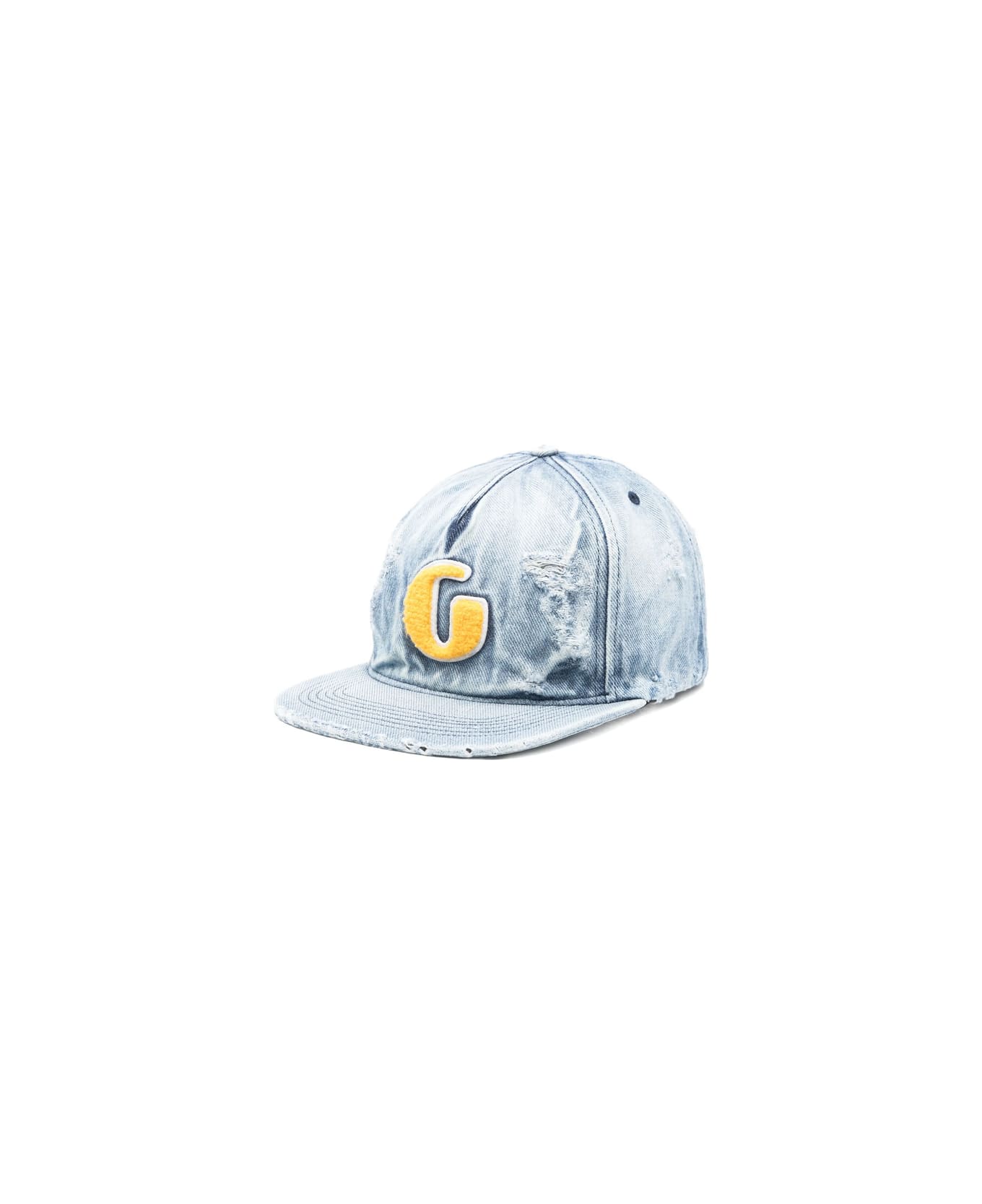 light blue appliqué logo distressed effect adjustable rear strap flat peak