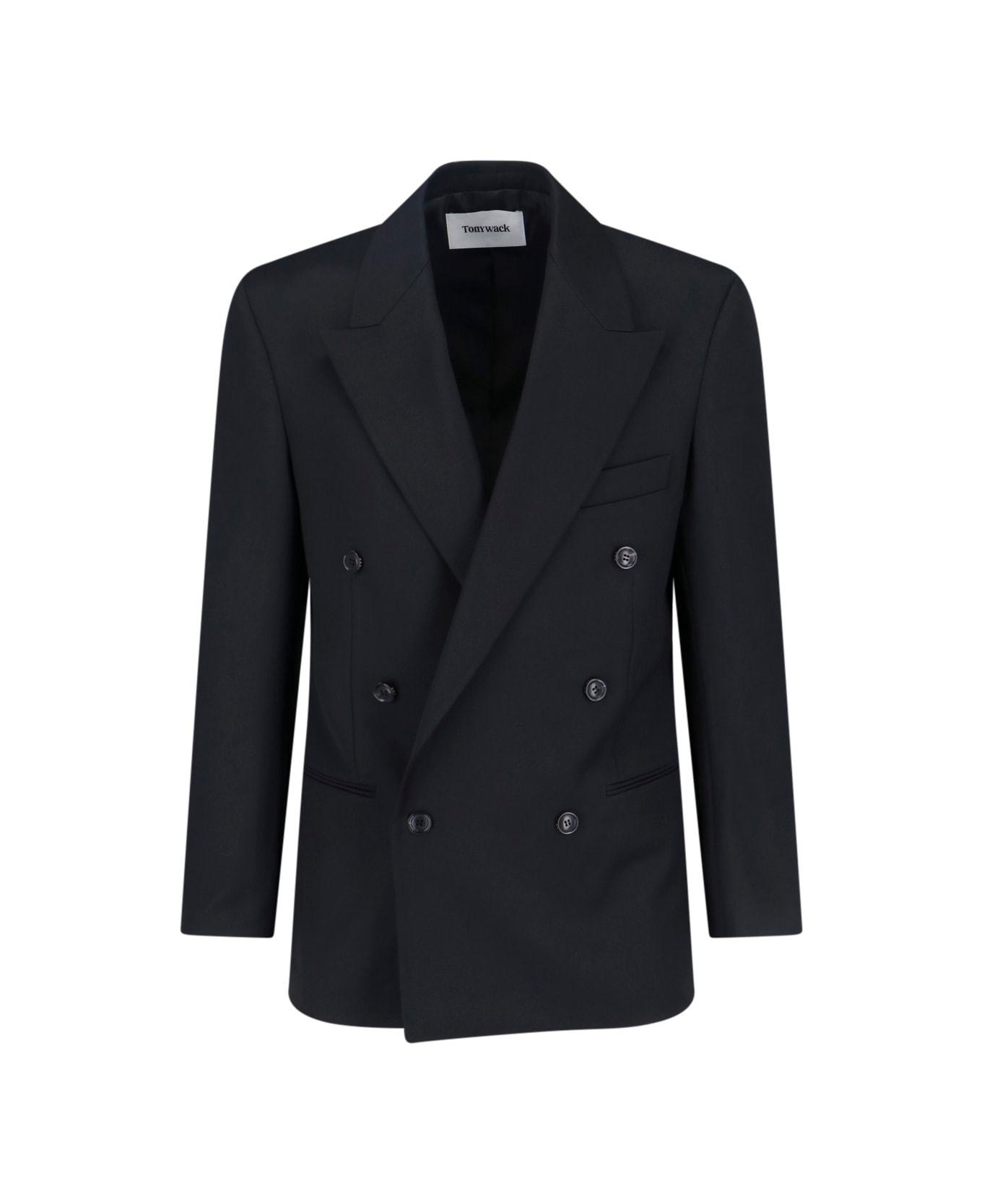 Tony Wack double-breasted blazer in black wool blend with peak lapels, button closure, chest pocket, two front welt pockets, straight hem. Composition: 50% Wool, 50% Polyester