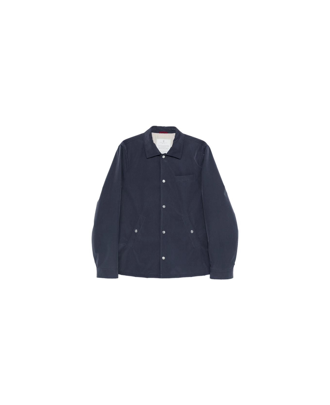 dark blue welt pockets press-stud fastening spread collar long sleeves straight hem
