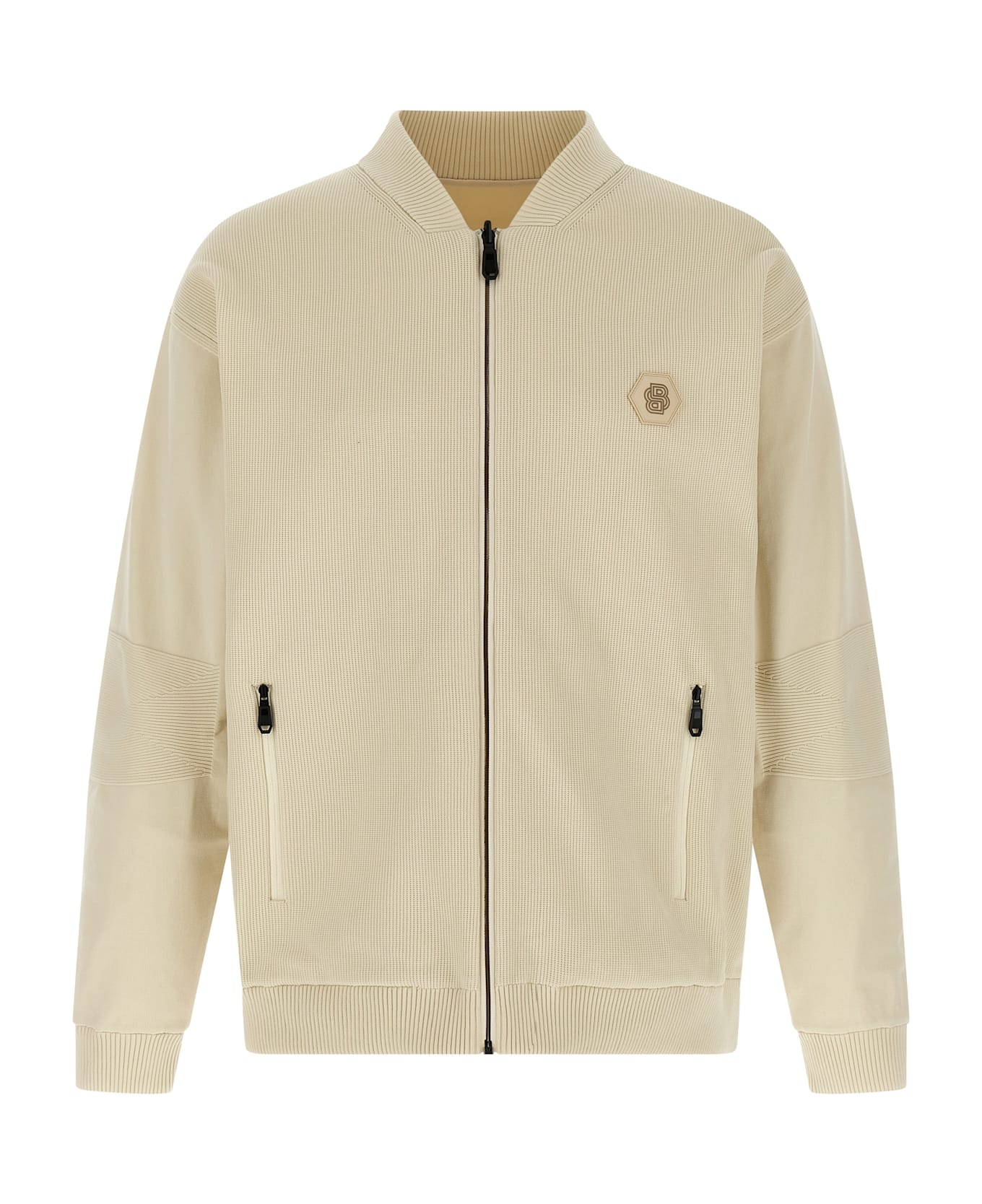 'Future' reversible bomber jacket in technical fabric with honeycomb and nylon front, tone-on-tone ribbed stretch knit details, silicone logo patch and front zip closure, pockets, long cuffed sleeves, and headband.