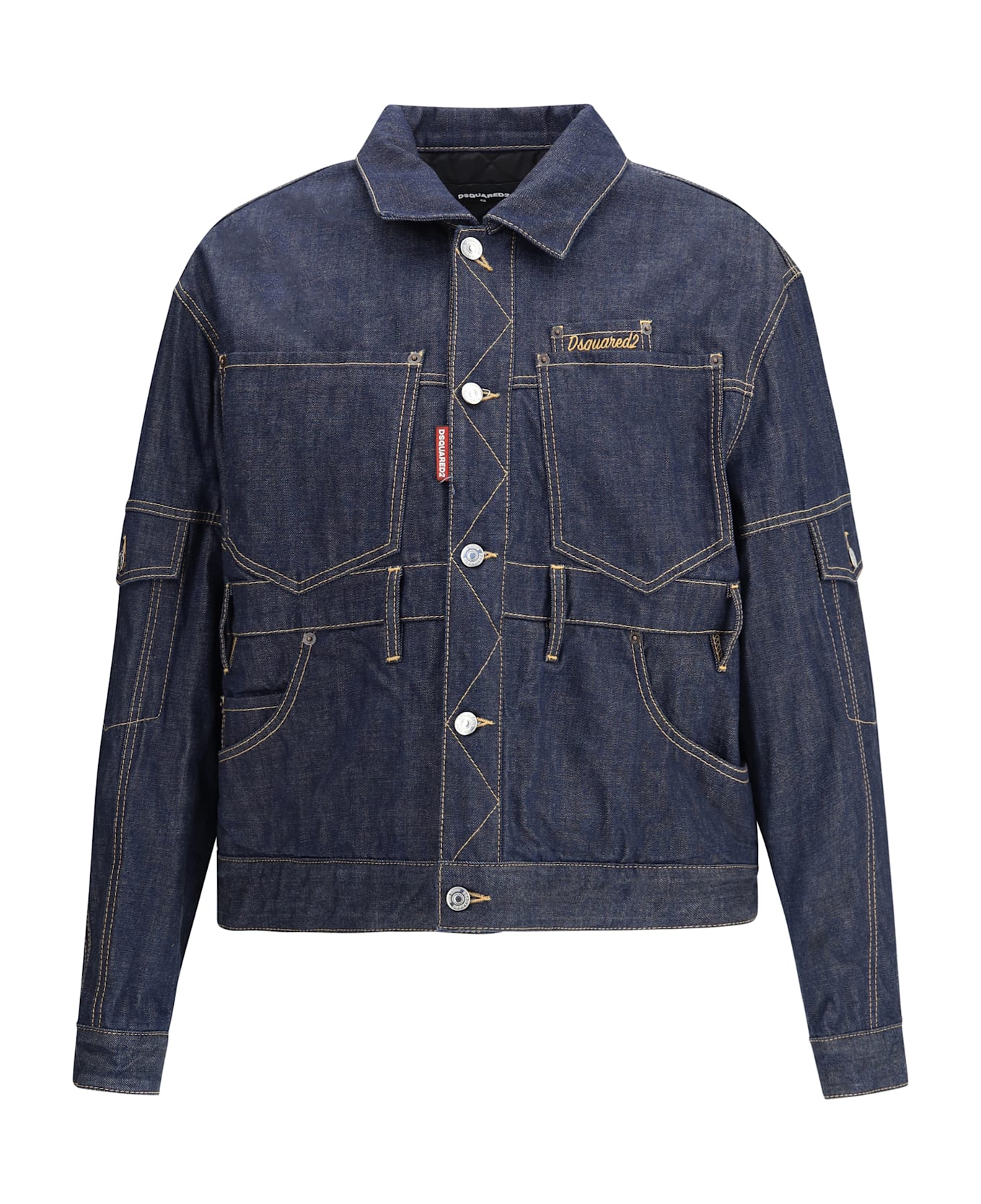 The cargo denim jacket by dsquared2 blends utility-inspired design with a modern urban attitude. crafted from cotton, it features panelled construction and contrast stitching that highlight its structured silhouette. the button fastening and multiple pockets enhance its functional appeal, embodying dsquared2 s bold and distinctive aesthetic.