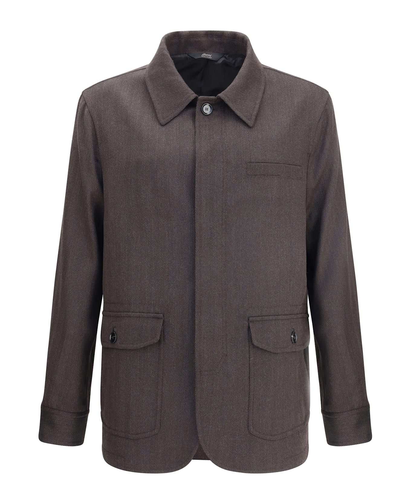 Brioni's herringbone fabric jacket is a refined garment that combines elegance and tradition. featuring a classic collar and front closure with concealed buttons, it has two patch flap pockets on the front and a welt breast pocket for a sophisticated and impeccable look. Composition: 100% % Wool