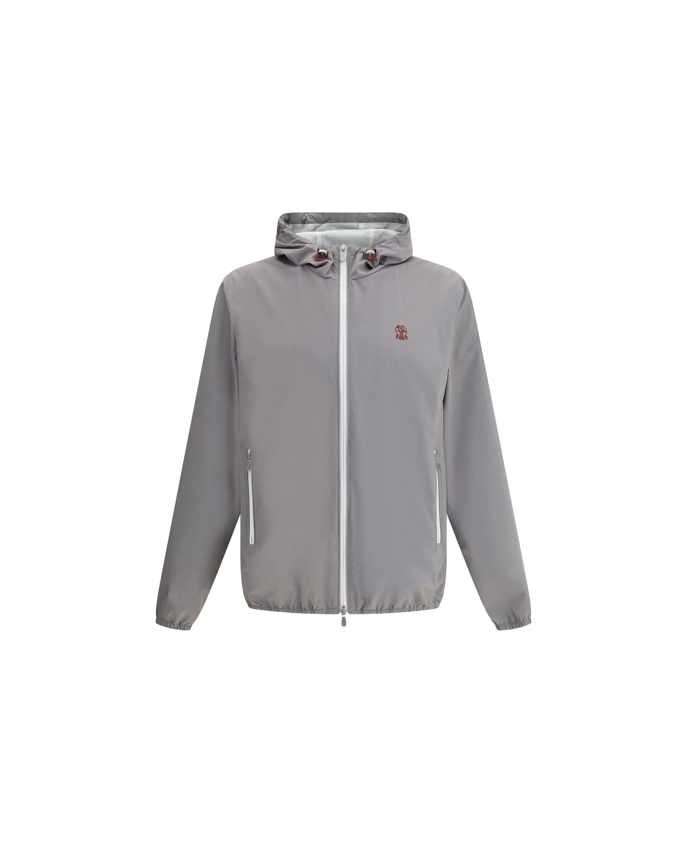 grey two-way zip fastening two side zip-fastening pockets embroidered logo at the chest long sleeves