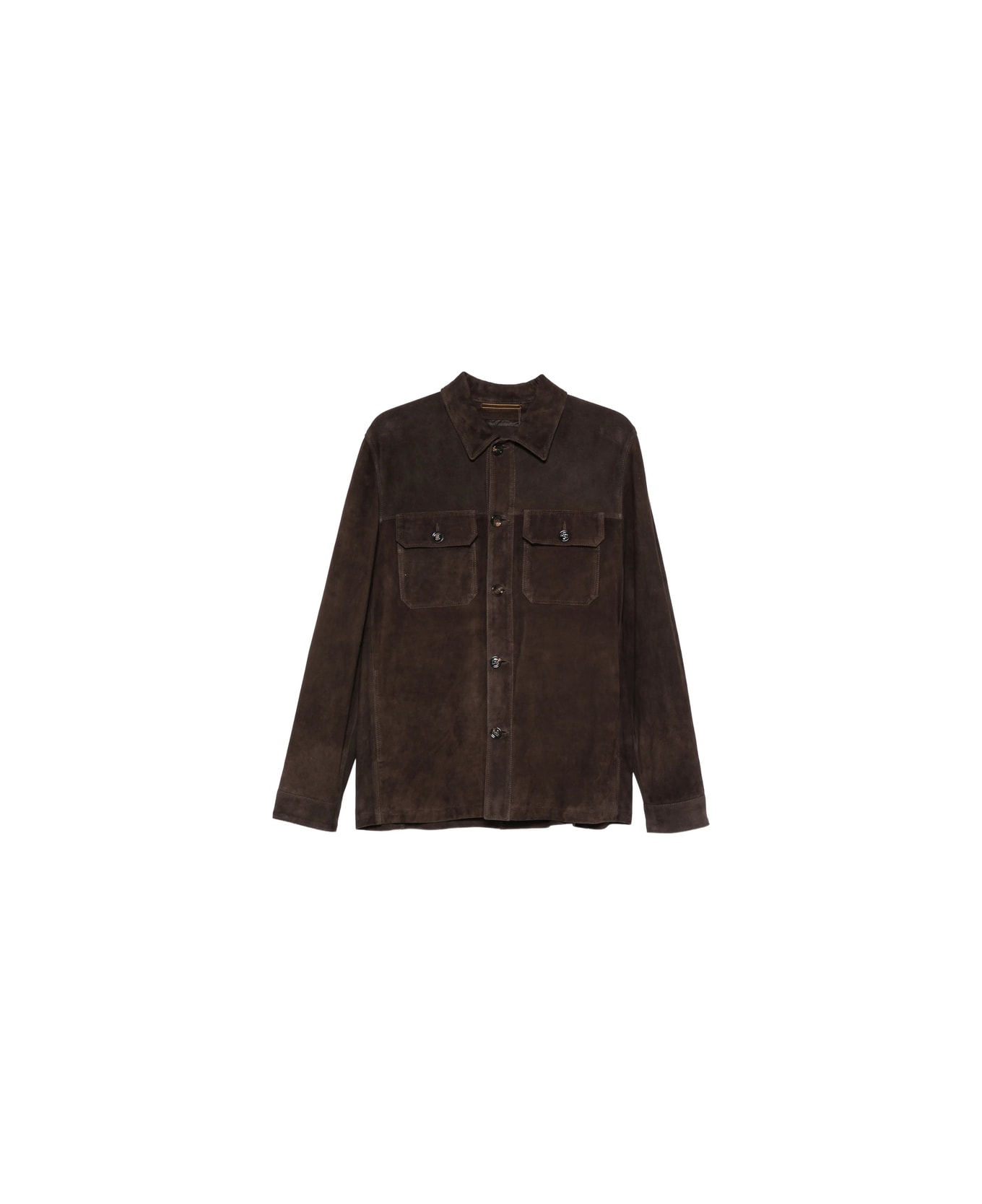 brown button fastening long sleeves flap pockets straight hem